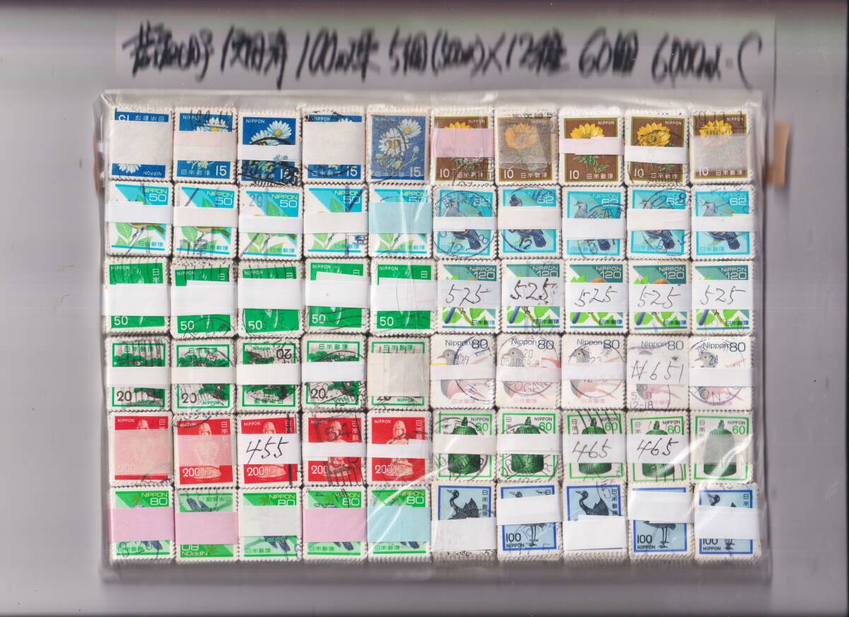 使用済切手 100枚束 各種  60個  6000枚ーC(12種X5個x100=6,000枚)