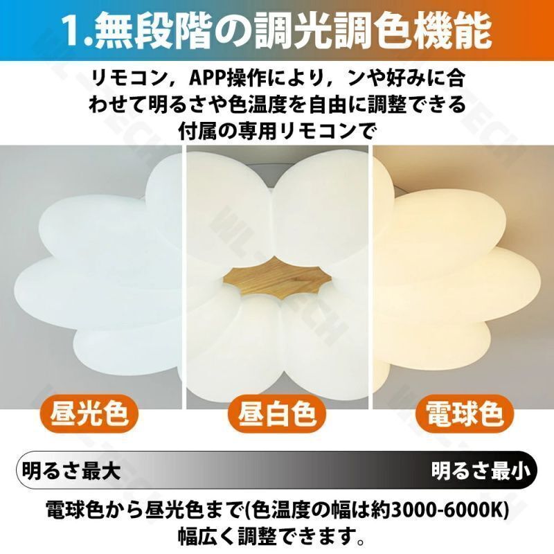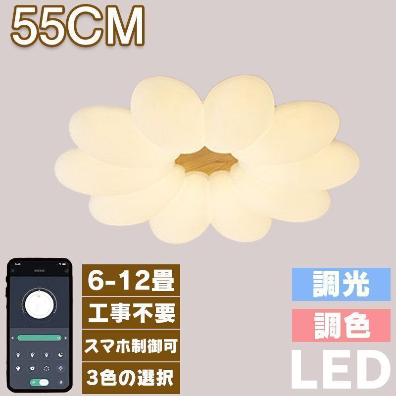 シーリングライト おしゃれ 北欧 LED 調光調色 洋室 子供部屋 リモコン スマホ 照明器具 天井照明 8-12畳 花 可愛い 工事不要 寝室 55cm