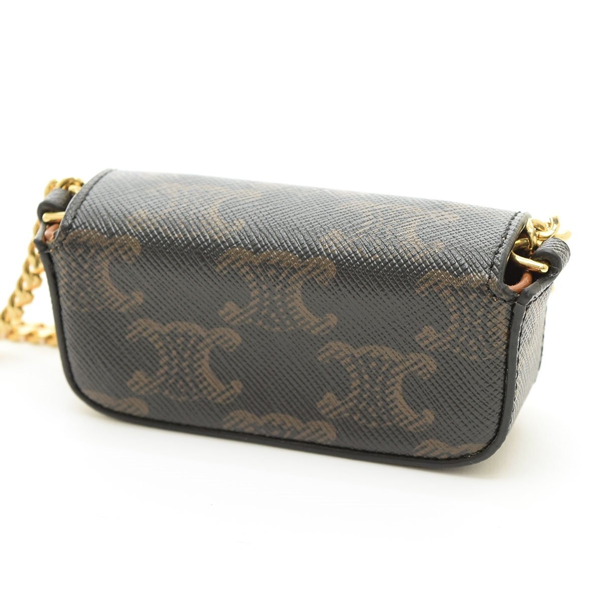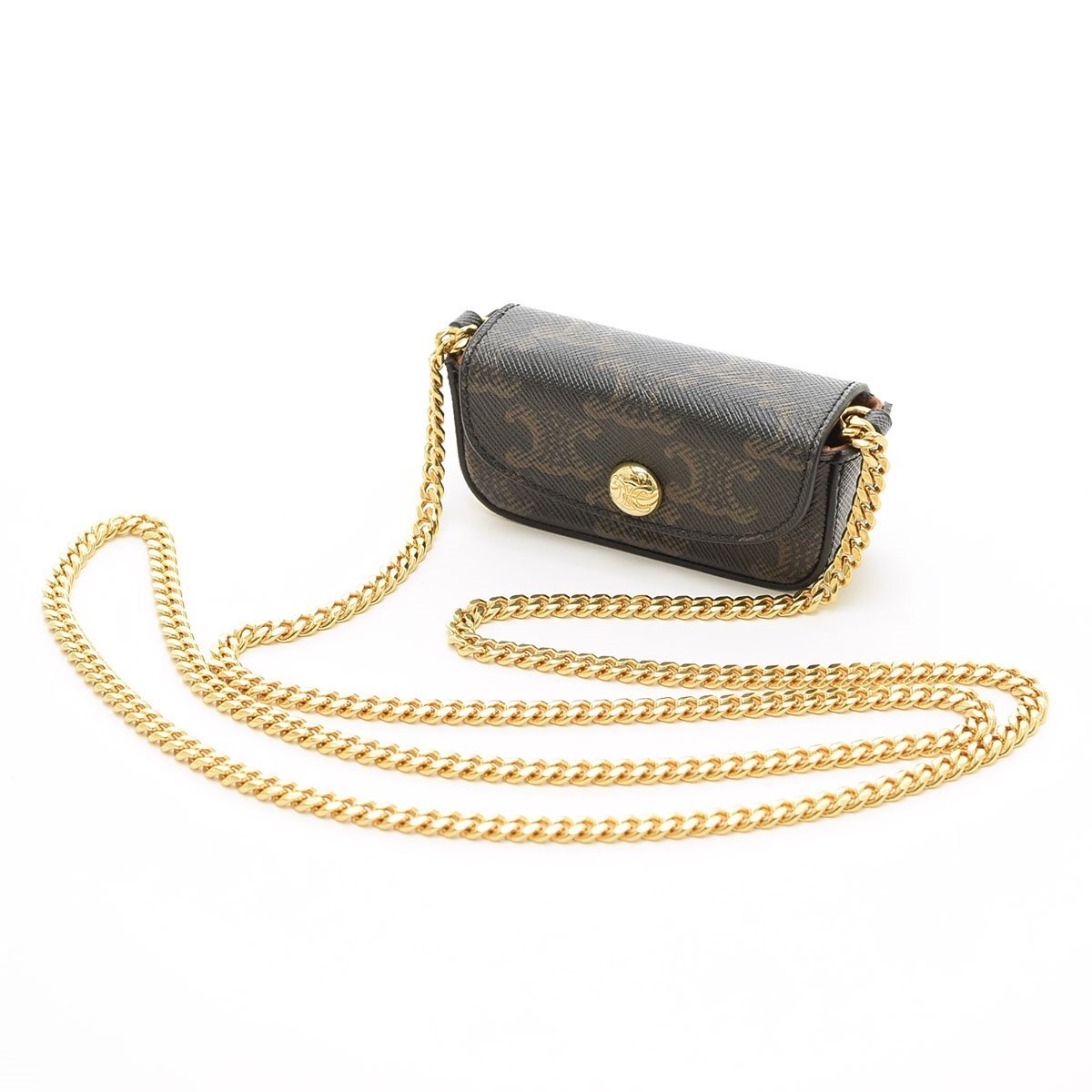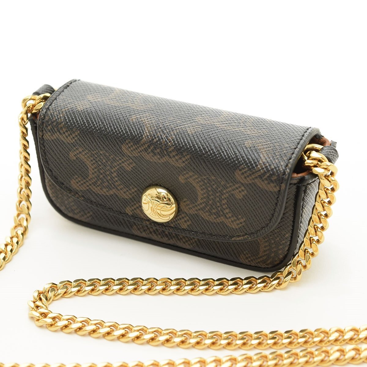 □561622 新品同様 CELINE セリーヌ ミニショルダーバッグ チェーン付き リップスティックケース トリオンフキャンバス ブラック タン
