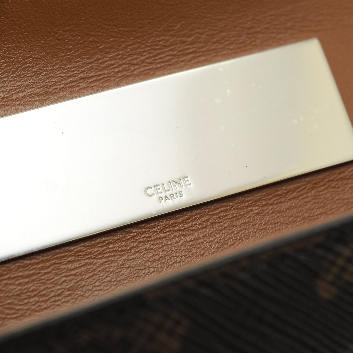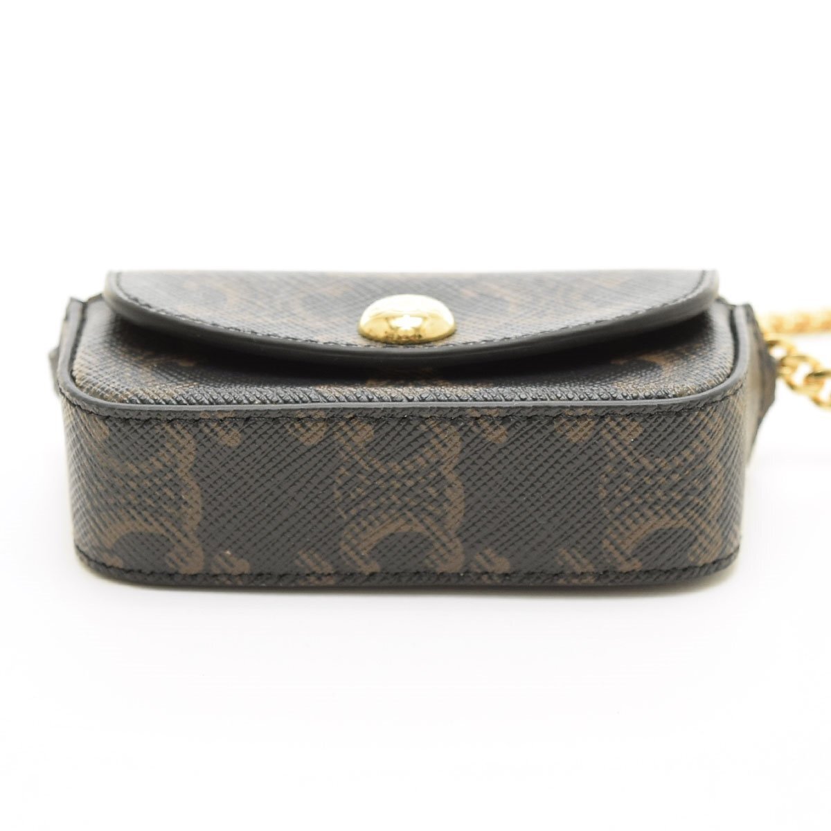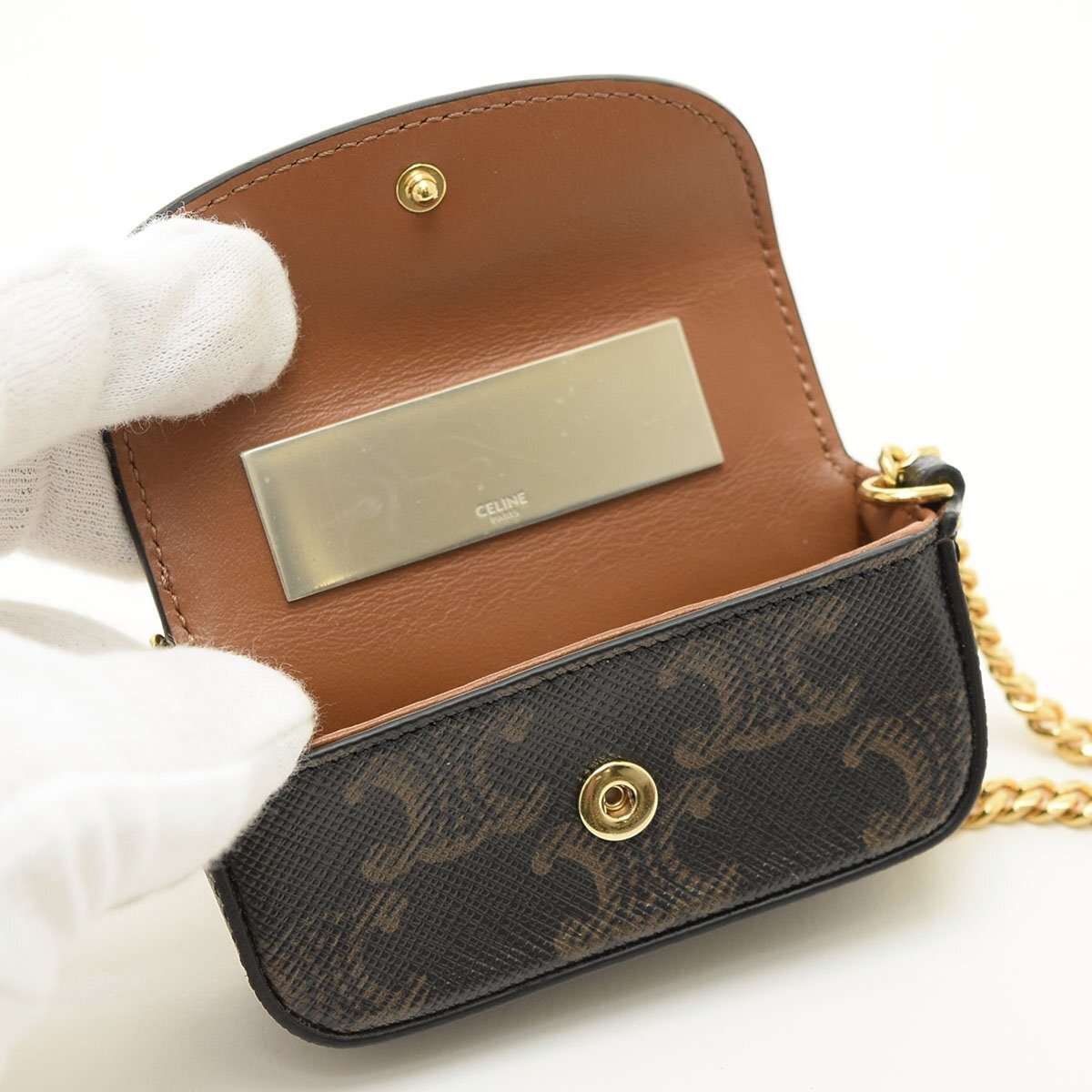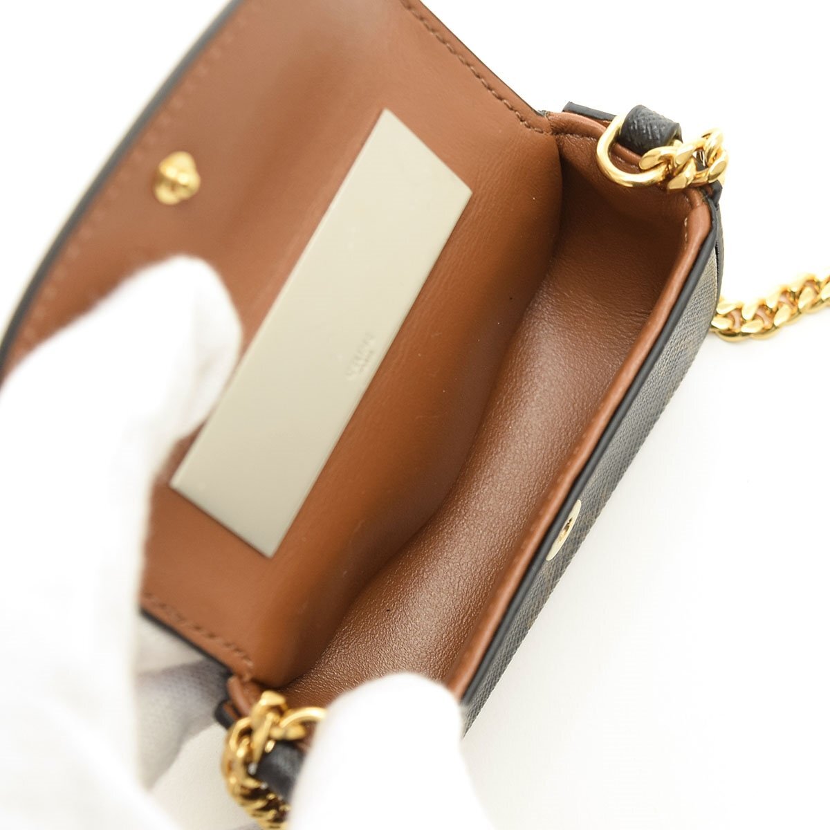 □561622 新品同様 CELINE セリーヌ ミニショルダーバッグ チェーン付き リップスティックケース トリオンフキャンバス ブラック タン