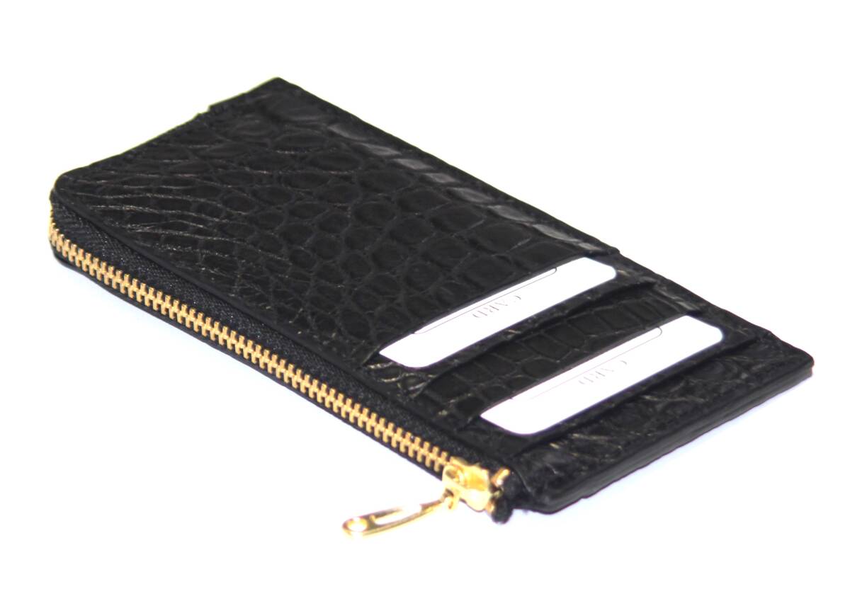 ■素材:鰐革、ナイロン裏地、YKK社製ファスナー  超薄型 日本製 クロコダイル マルチウォレット