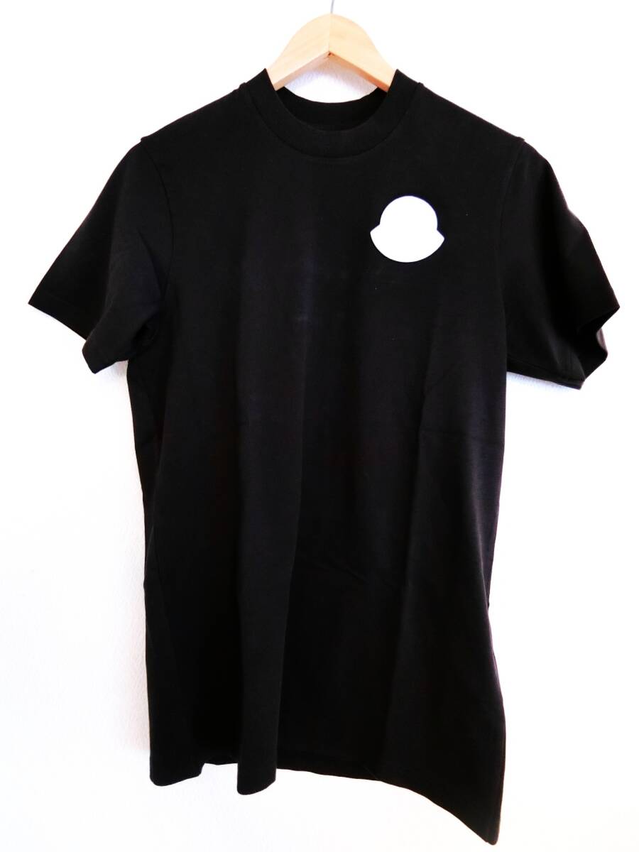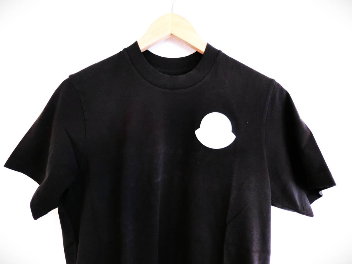 【新品 タグ付】MONCLER Tシャツ メンズ 半袖 クルーネック 黒 ブラック エンボス加工 フェルトロゴ ワッペン 白 コットンジャージー XS