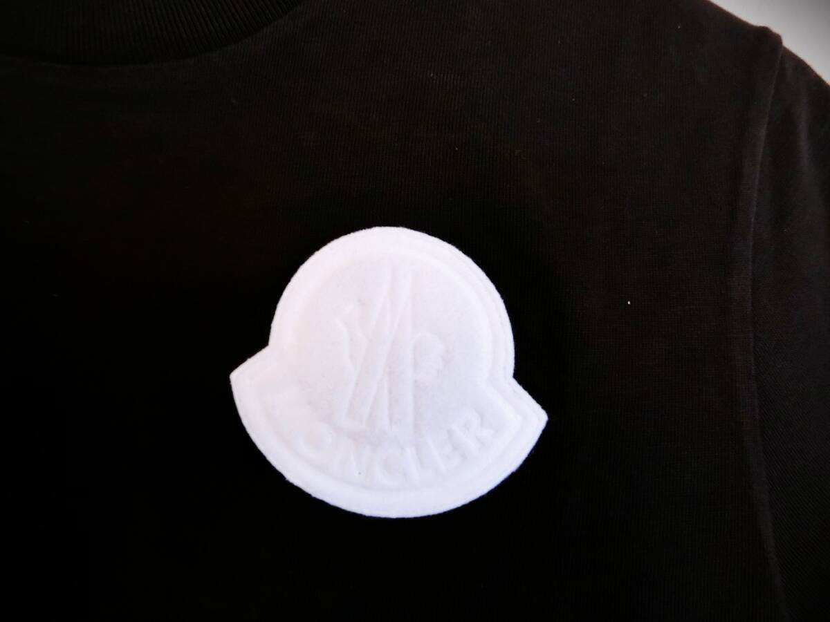 【新品 タグ付】MONCLER Tシャツ メンズ 半袖 クルーネック 黒 ブラック エンボス加工 フェルトロゴ ワッペン 白 コットンジャージー XS 高級感