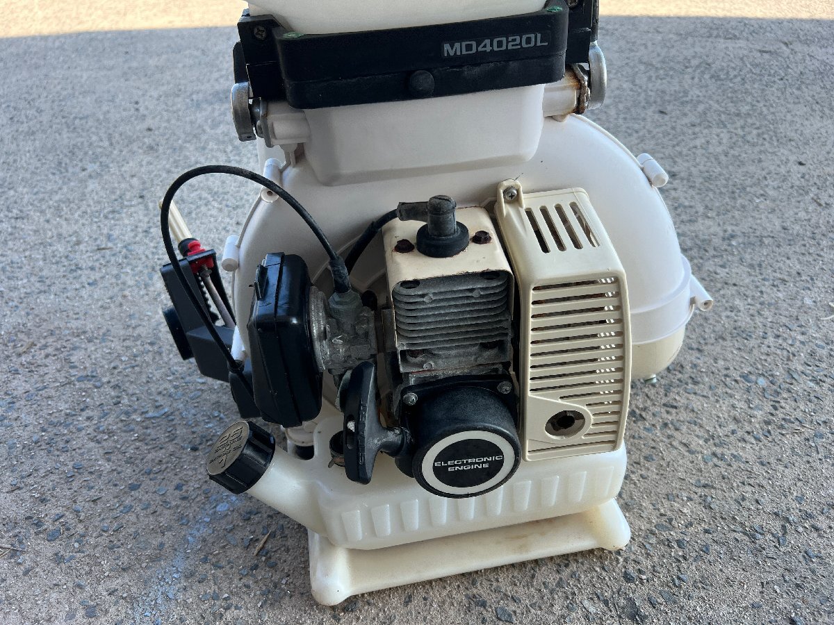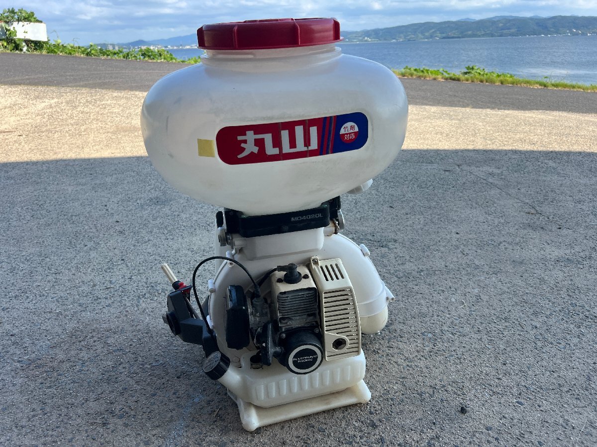 丸山 背負い式動力散布機 MD4020Lです。燃料混合油 チェックの際タンクの割れがあり燃料漏れしますのでそれ以上の見ていませんのでジャンク品になります。ジャンク品になりますので細かい質問等お答えしかねますのでご理解の上入札をお願いいたします。現状渡しです。