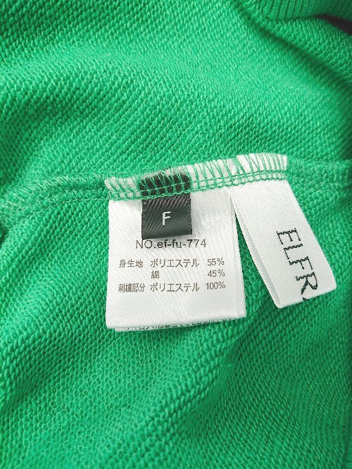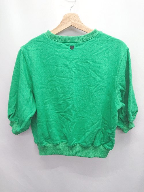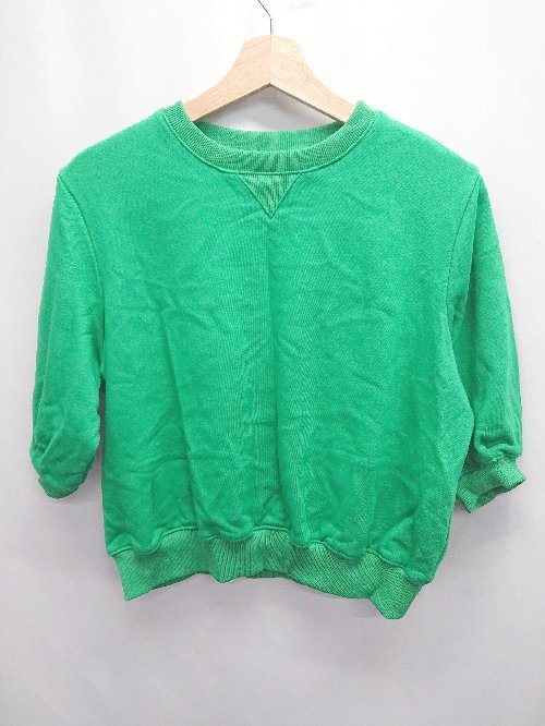 ◇ Θ ELFRANK エルフランク ワンポイント 五分袖 カットソー サイズF グリーン レディース E