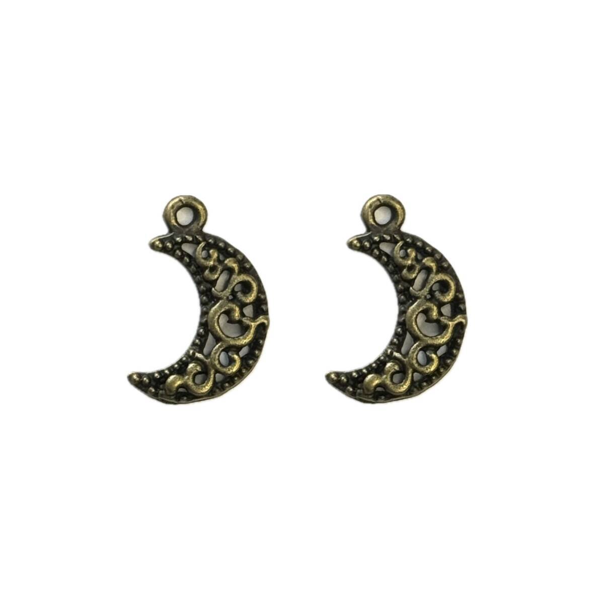 金古美*透かし 三日月 ロマンティック 月 チャーム 2個