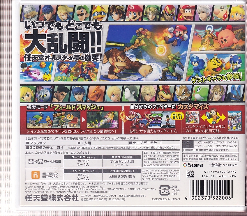 DA★中古ゲーム★3DS★大乱闘スマッシュブラザーズ for Nintendo 3DS★CTR-P-AXCJ
