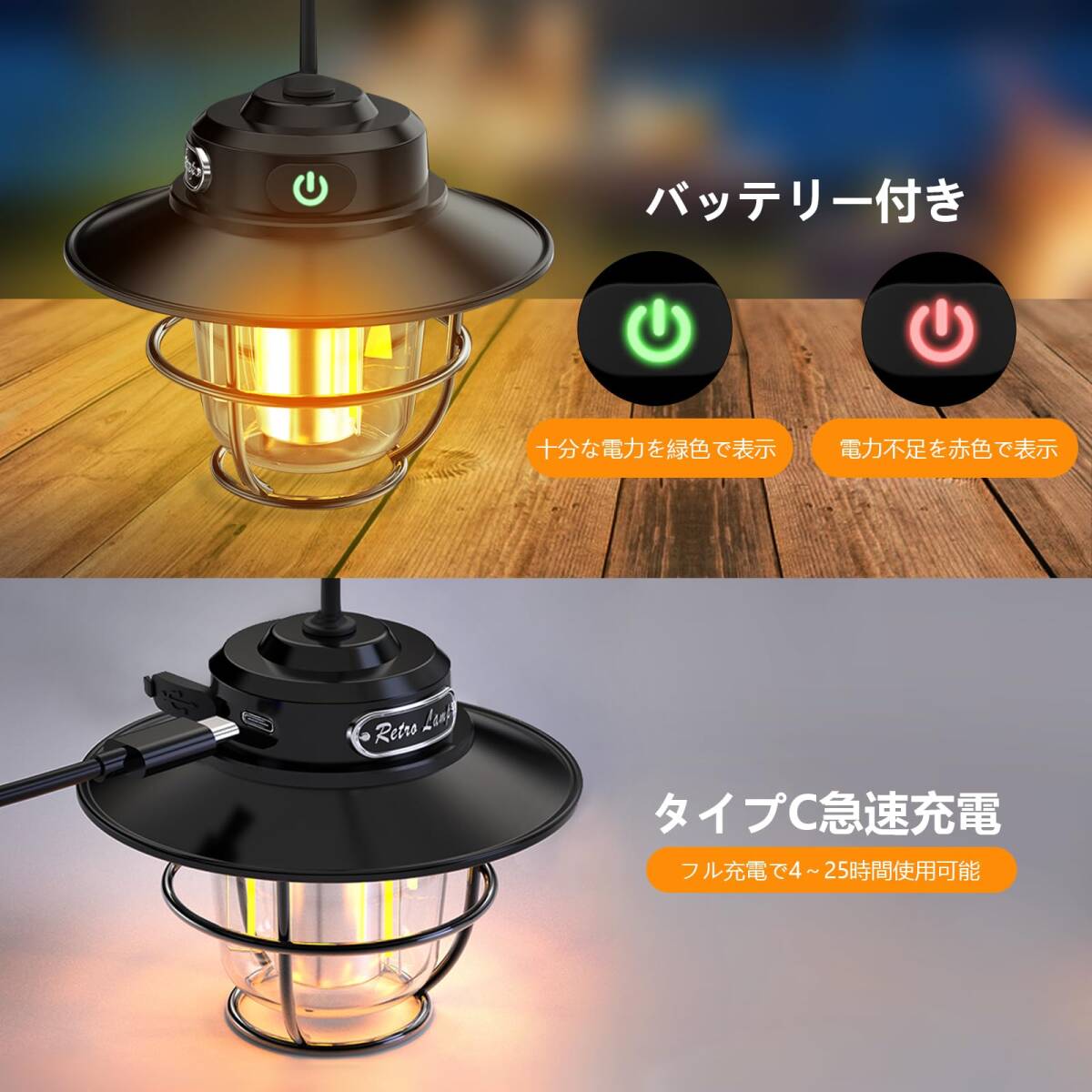 【幅広い用途】このテントライトはユニークなレトロスタイルで、寝室、庭、パティオを飾ることができ、どんな環境にも洗練された雰囲気を加えます。 キャンプ、釣り、登山、ハイキングなどのアウトドア活動に最適です。 停電時の非常灯としても使用できます。