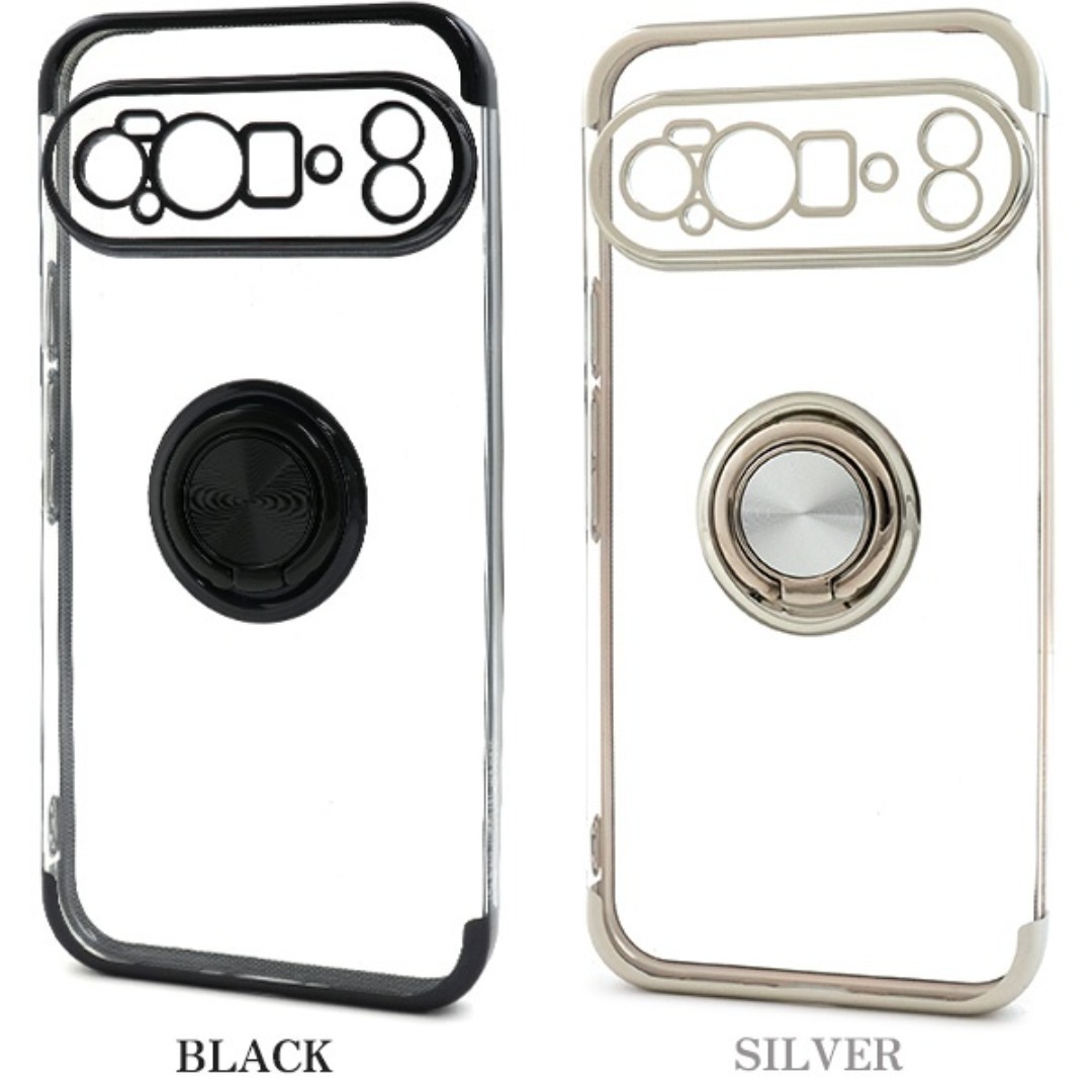 スマホリング付きメタルカラーバンパーソフトクリアケース 落下防止用のスマホリングが付いた、メタルカラーバンパーソフトクリアケースです。