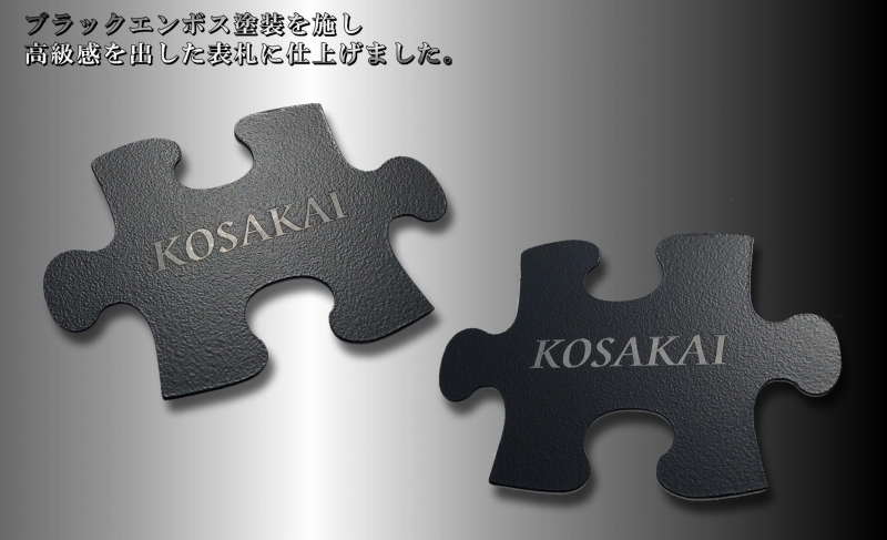 アルミを切り抜き後、ブラックエンボス塗装を施した表札