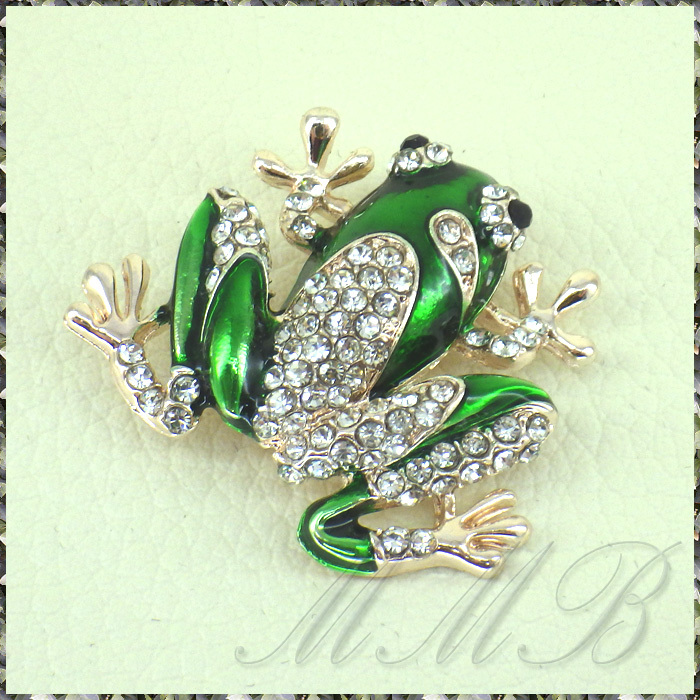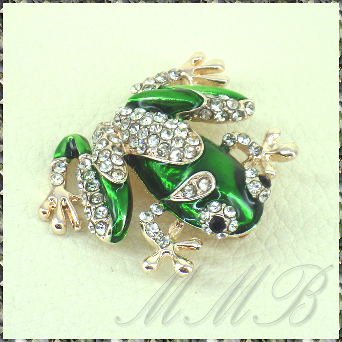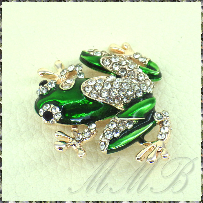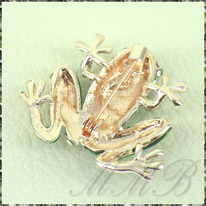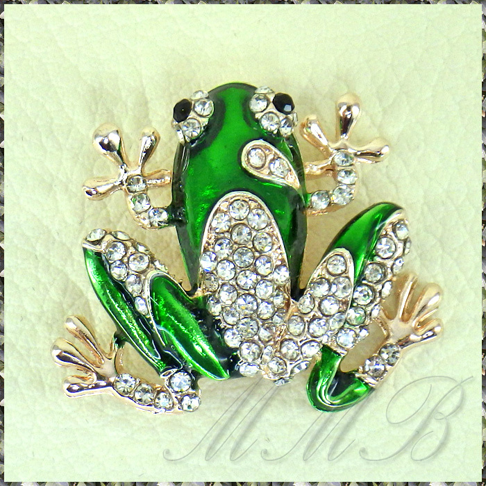 [BROOCH] Gold Plated Crystal Enamel Frog ビューティフル エナメル彩色 ホワイト クリスタルCZ フロッグ カエル ブローチ