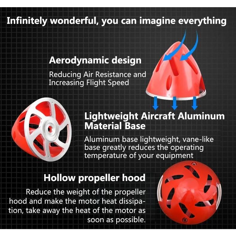 このスピナーはユニバーサルで、電気飛行機やガソリン飛行機に使用できます。