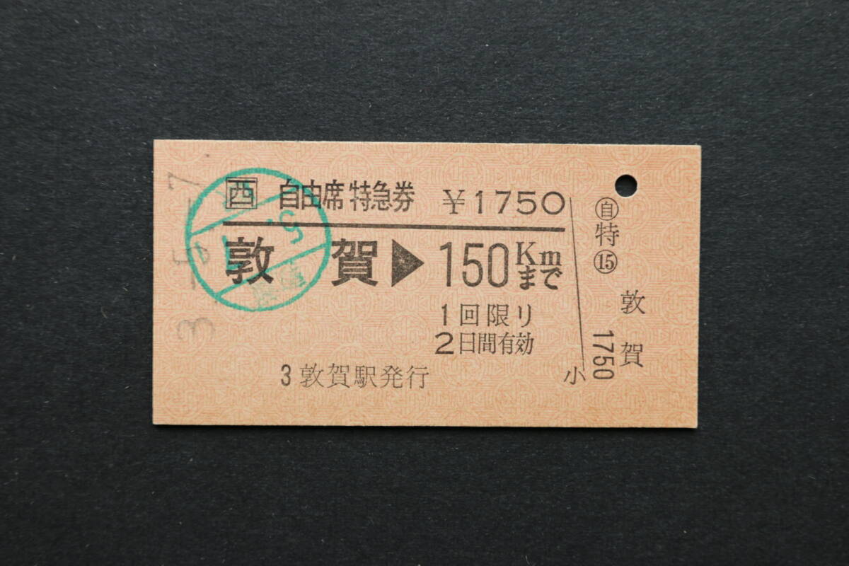 JR西自由席特急券 敦賀 150㎞ ¥1750