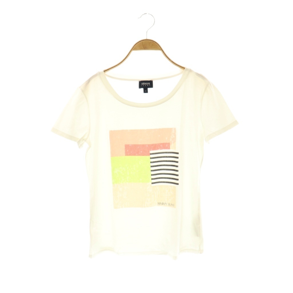 アルマーニ ジーンズ ARMANI JEANS スパンコール 半袖 Tシャツ カットソー 42 ホワイト /DF ■OS レディース