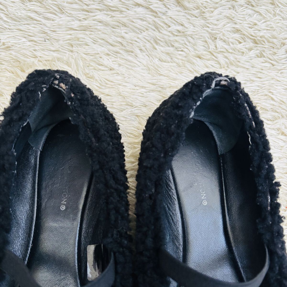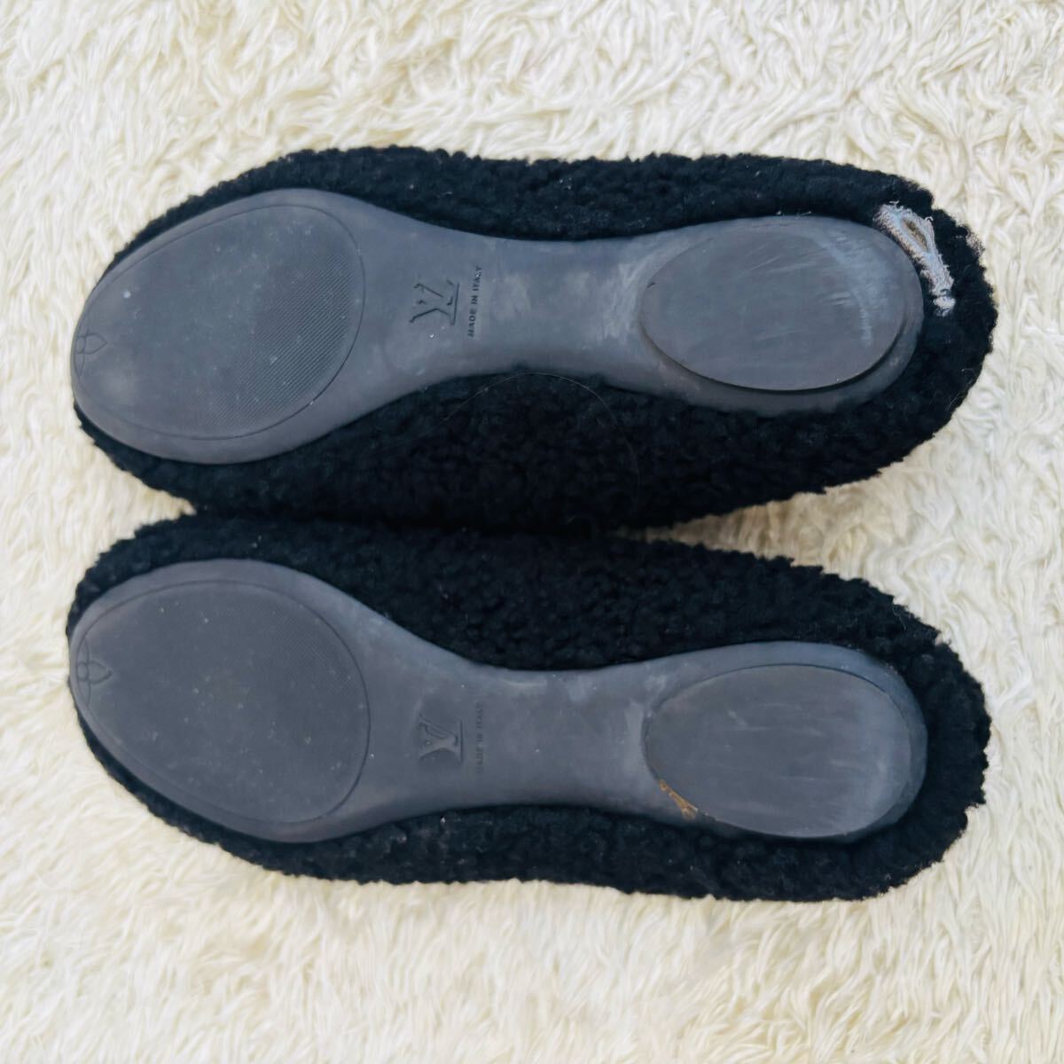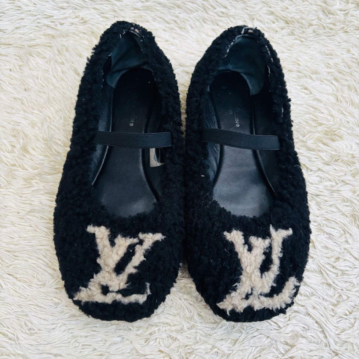 【商品名】ルイヴィトン LOUIS VUITTON ポピライン ボア フラットシューズ バレエシューズ ムートン ボア LVロゴ 37M 24cm 黒 ブラック /KU