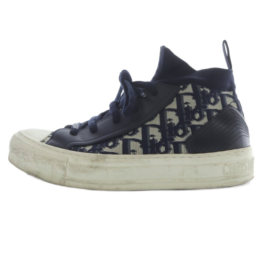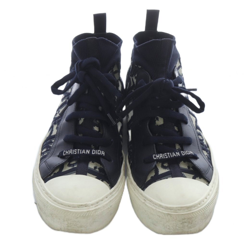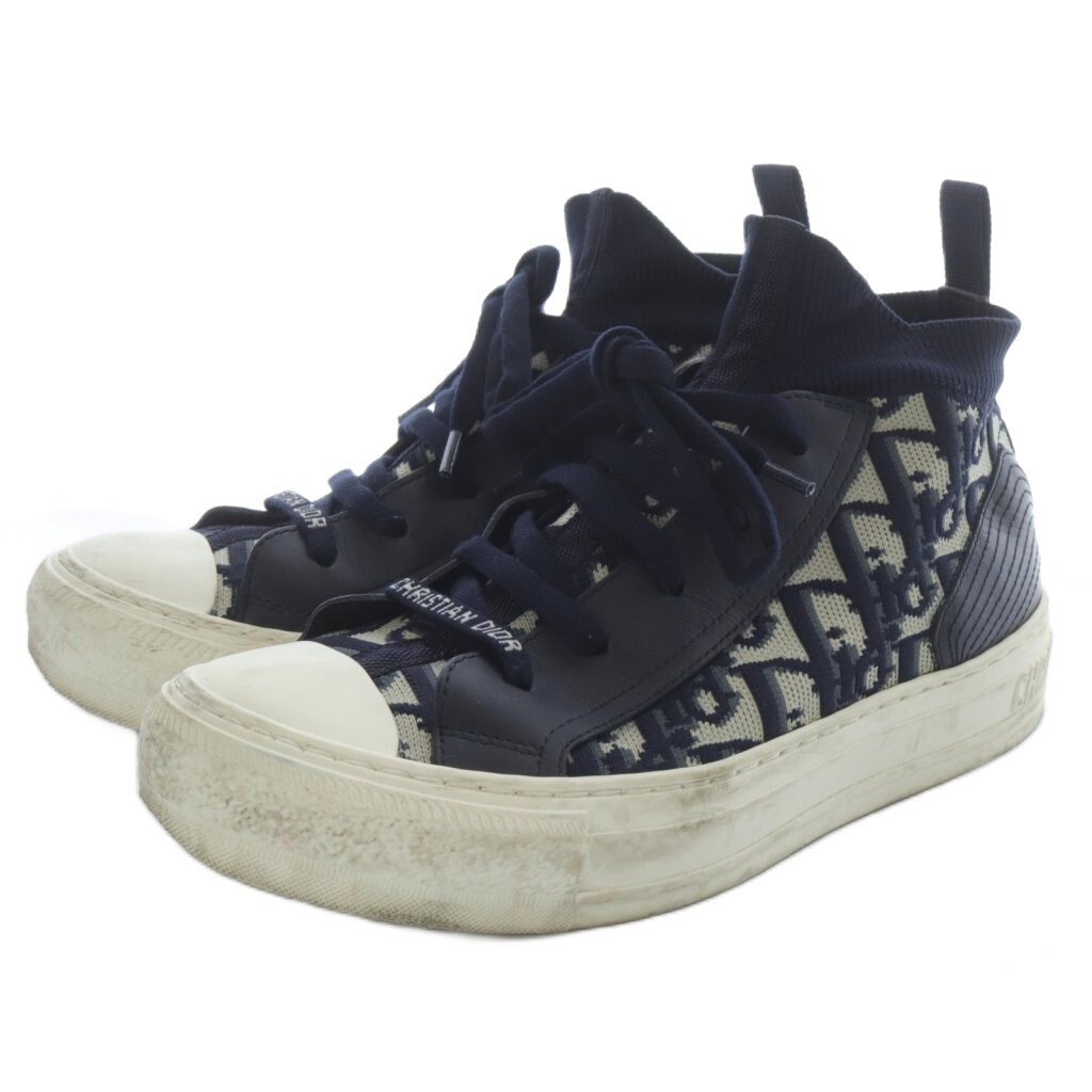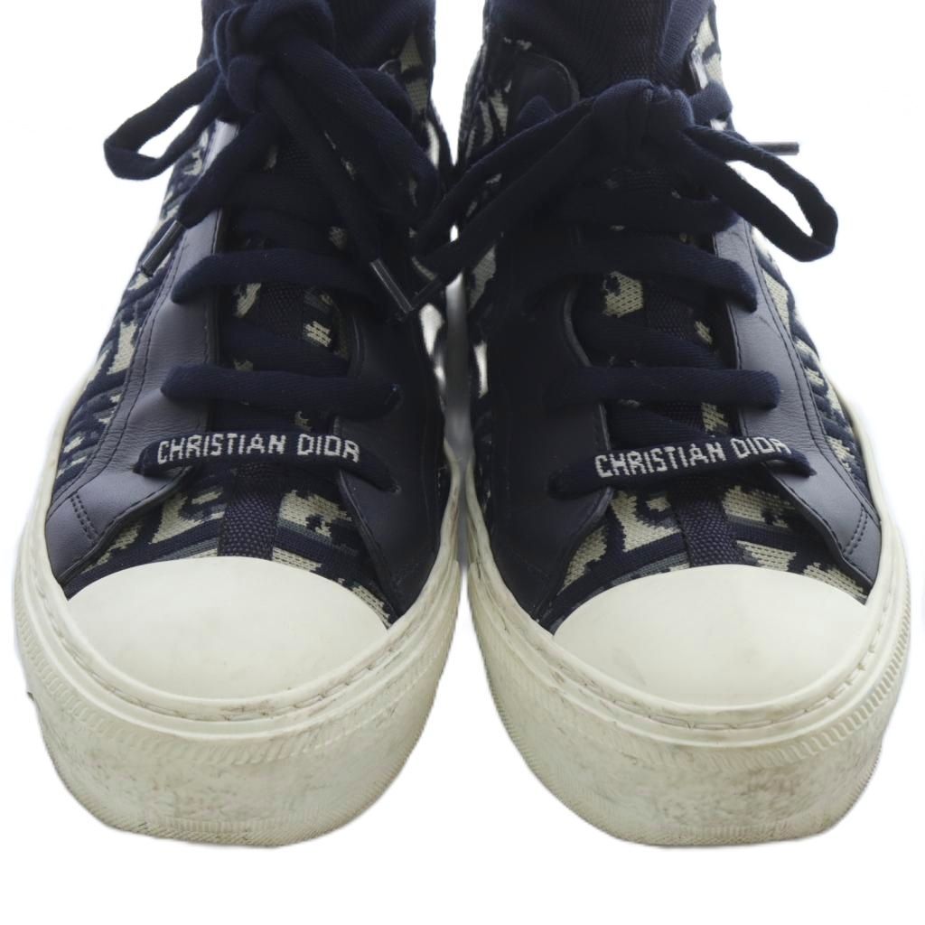 クリスチャンディオール Christian Dior WALKNDIOR オブリーク ニットスニーカー ハイカット 切替 36 紺 ネイビー /SR49 レディース
