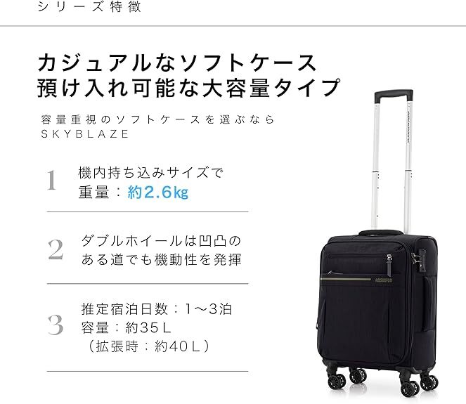 【YH-3412】未開封品 American Tourister アメリカンツーリスター スーツケース キャリーケース SKYBLAZE ソフトケース 35(40)L ブラック