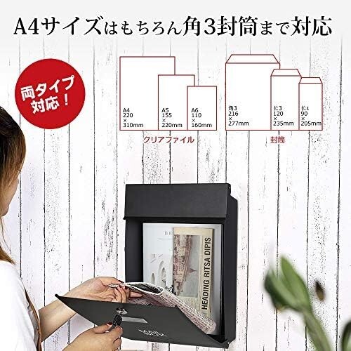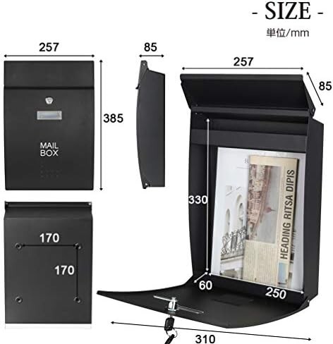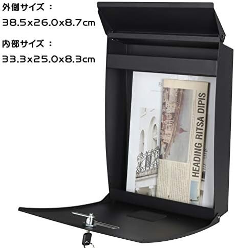 Jssmst(ジェスマット) メールボックス ブラック キーロック 大型 郵便受け (006-Black)