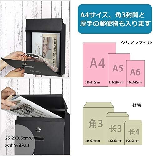 サイズ:幅25.7x高さ38.5x奥行8.5cm  投函口サイズ:約25.2x3.5cm