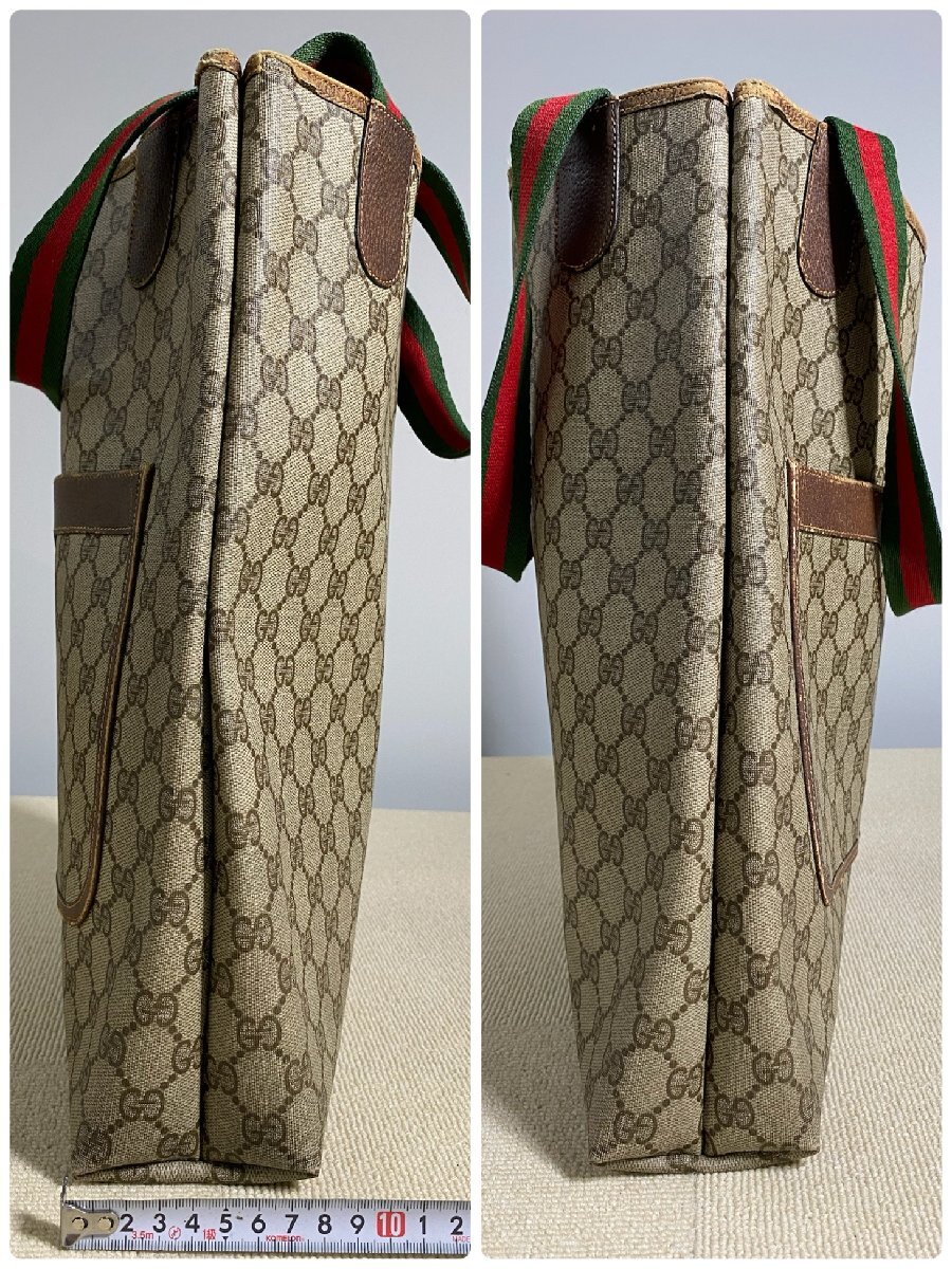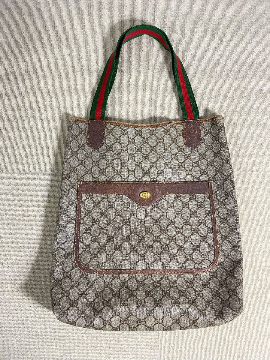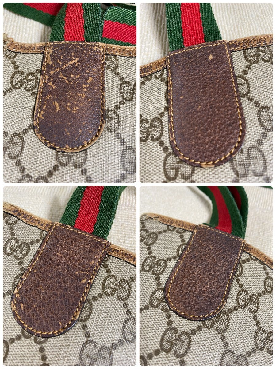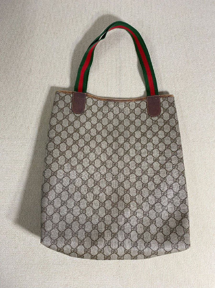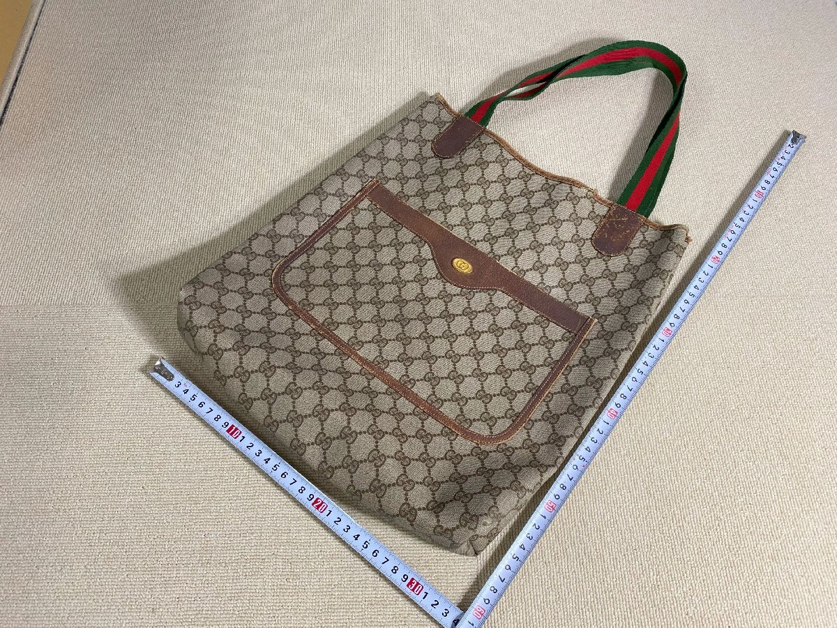 【中古品】グッチ オールドグッチ トートバッグ ショルダーバッグ シェリーライン GG コーティングキャンバス カーキベージュ GUCCI