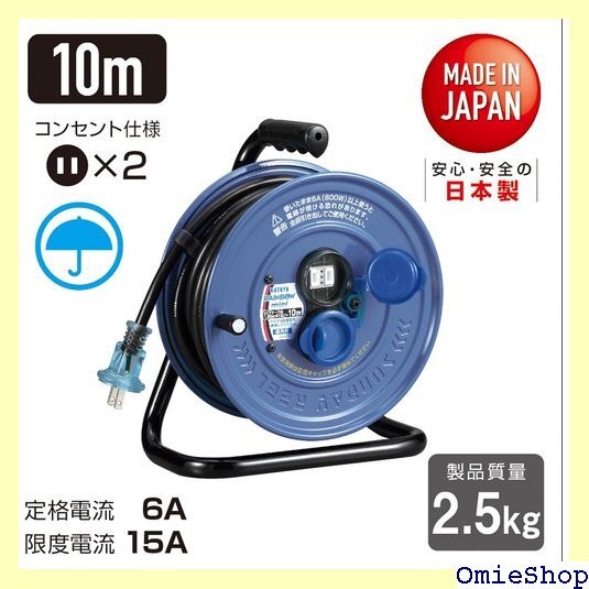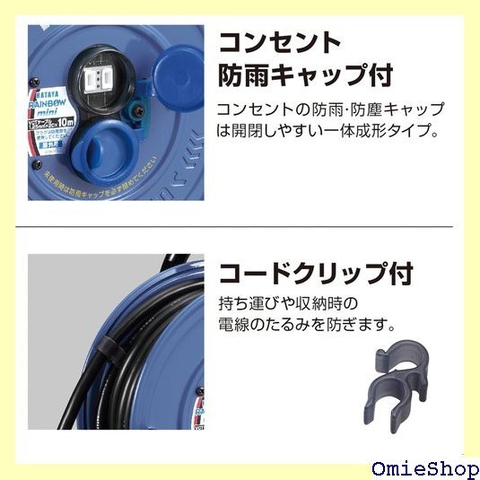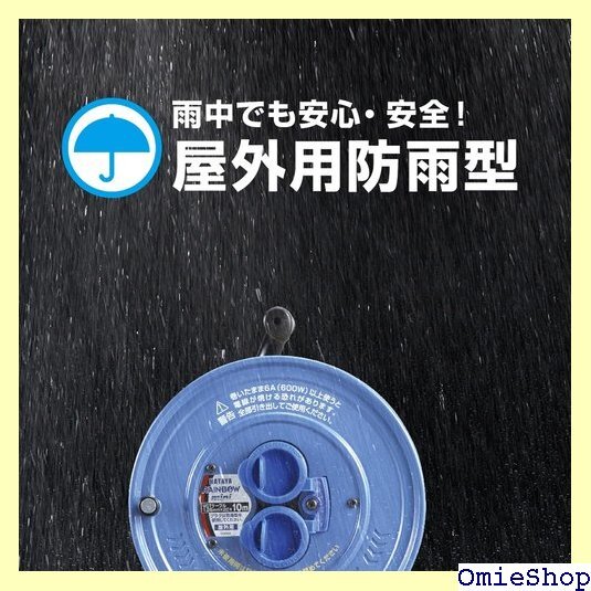 【特徴】雨中や水しぶきがかかる場所でも使える屋外用の10mコンパクトタイプのコードリールです。便利に使える防雨型のコードリールでコンセントの防雨・防塵キャップは一体成型タイプを採用しており、開閉が簡単です。