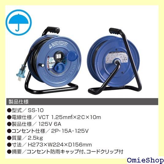 ハタヤ HATAYA コードリール 小型 屋外用 防雨型 100V型 コード10m 太さ1.25 標準型 コンセント2個 コンセント防雨キャップ 家庭用 工場用 建設現場 サンデーレインボーリールミニ SS-10 399