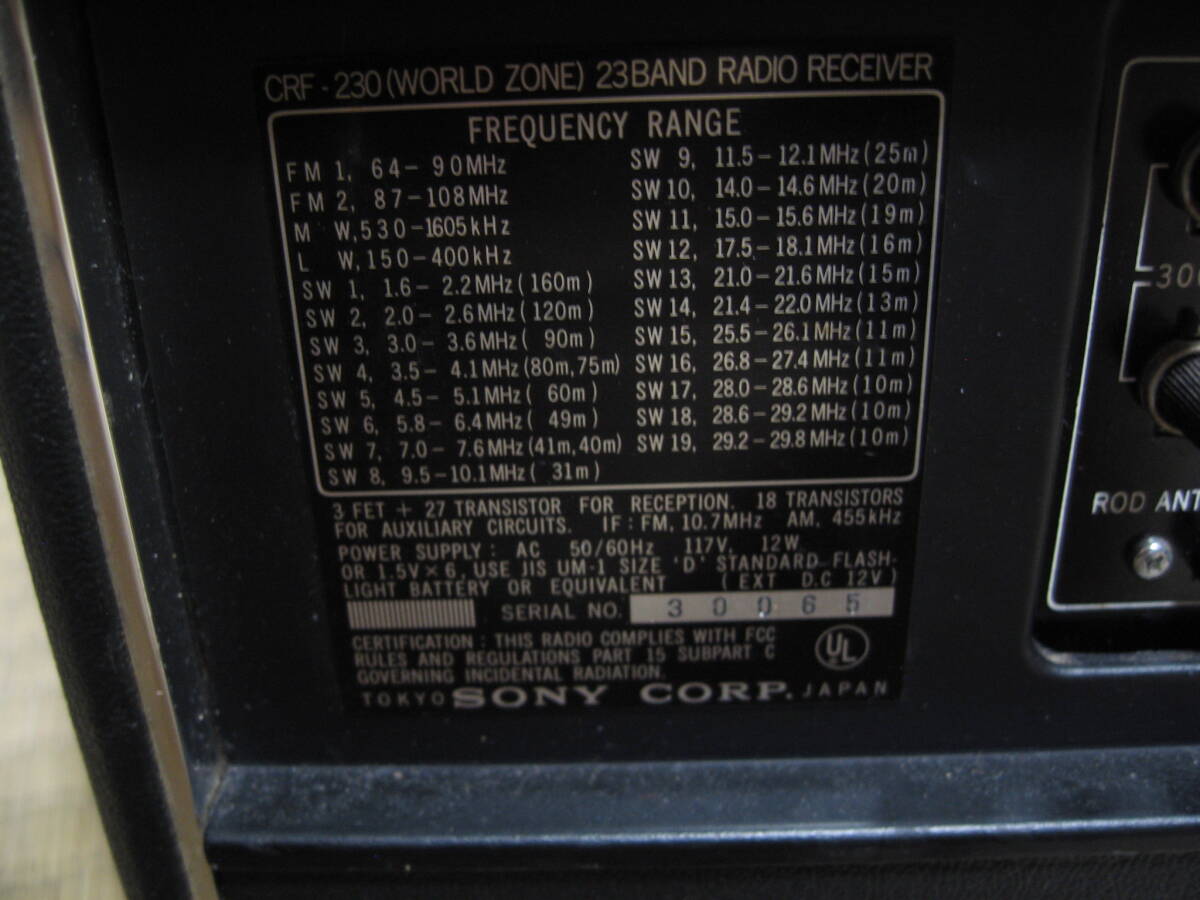 SONY WORLDZONE CRF230  コレクション品 電源コードで動作確認ずみ