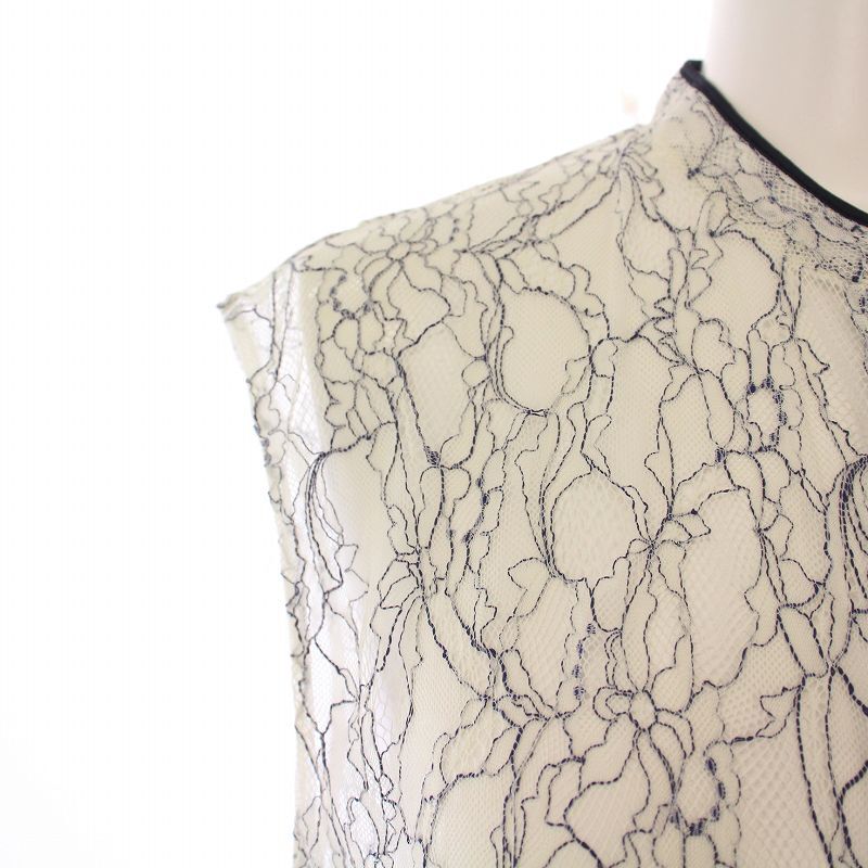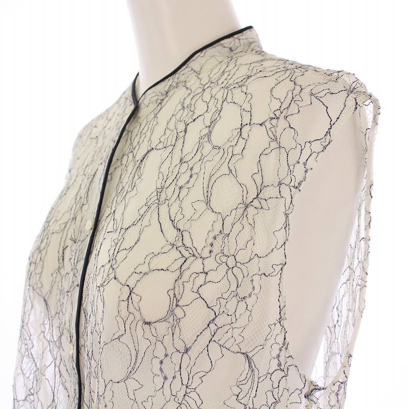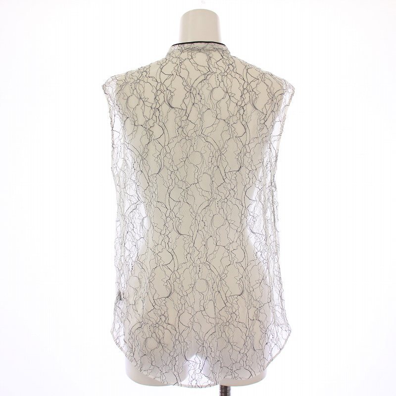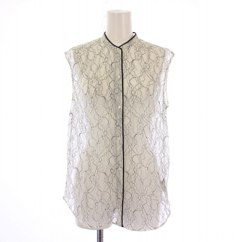 トゥモローランドコレクション TOMORROWLAND collection ファインレースノースリーブブラウス シャツ バンドカラー