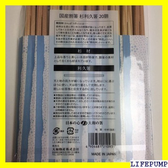 大和物産 日本製 割りばし 利久箸 杉 約21cm 森 間伐材や端材を有効利用して作った割箸 20膳入3個セット 1014