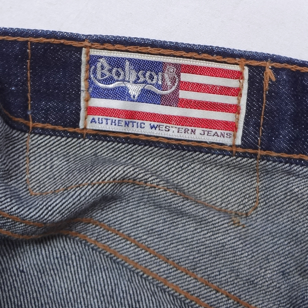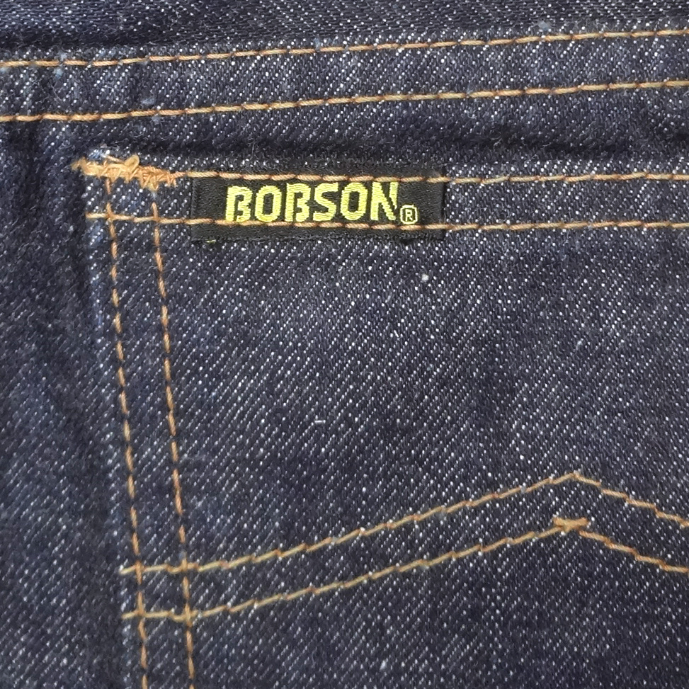 ボブソンBOBSONのフレアージーンズ、実店舗の店頭展示品を1度洗濯しただけの未使用品、インディゴブルーデニム綿100%、レア物、ベルボトムジーパン、ラッパGパン