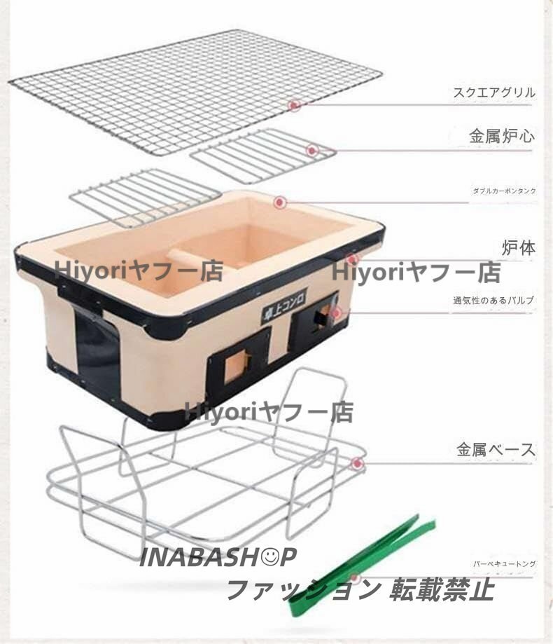 長角 木炭コンロ 真ん中仕切りろ過性、吸着性などの利点があり、また従来の鉄製ストーブに比べて炭の使用量が約30%節約でき、油煙も従来の鉄製ストーブよりも少なくなります。