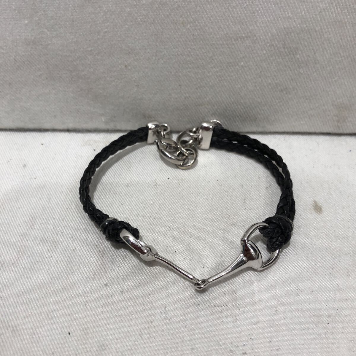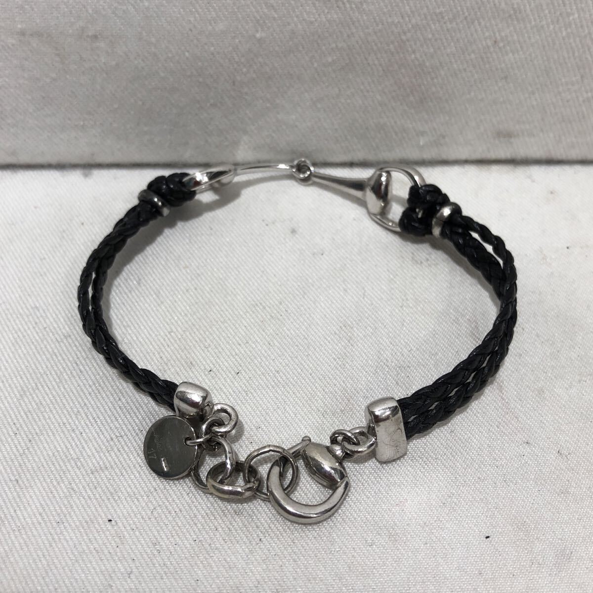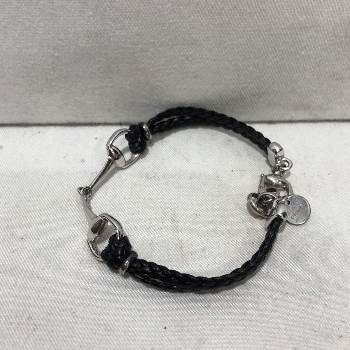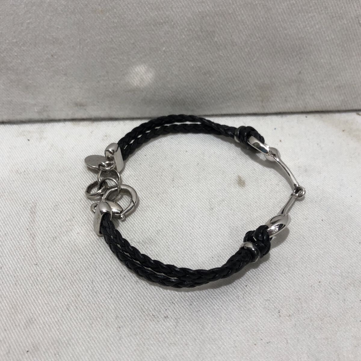 ts20250823【GUCCI】ホースビット ブレスレット グッチ アクセサリー シンプル ロゴプレート付き SV925 レザー切り替え ss