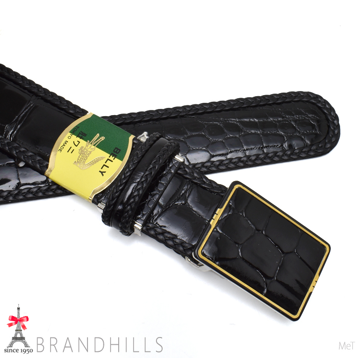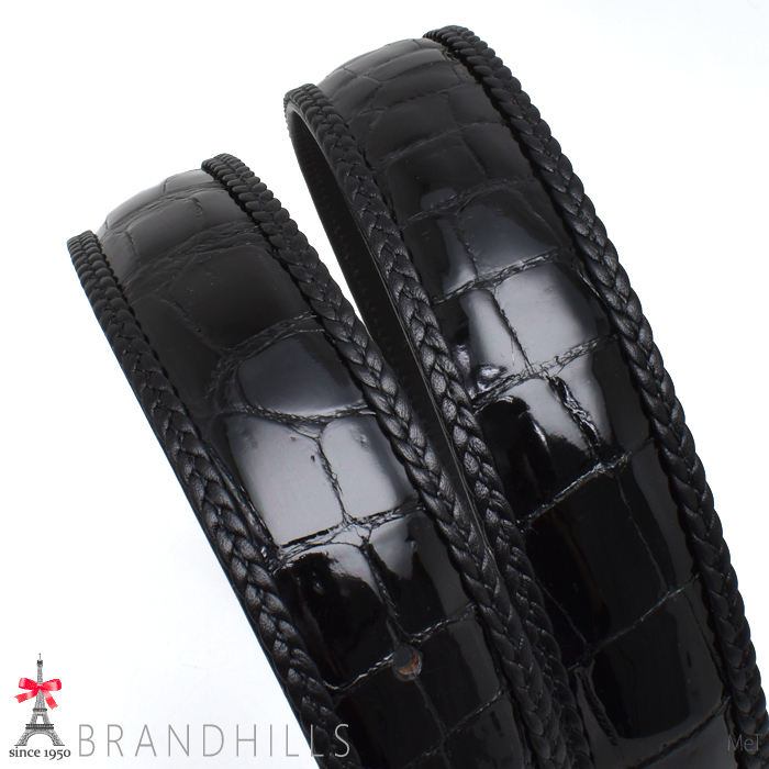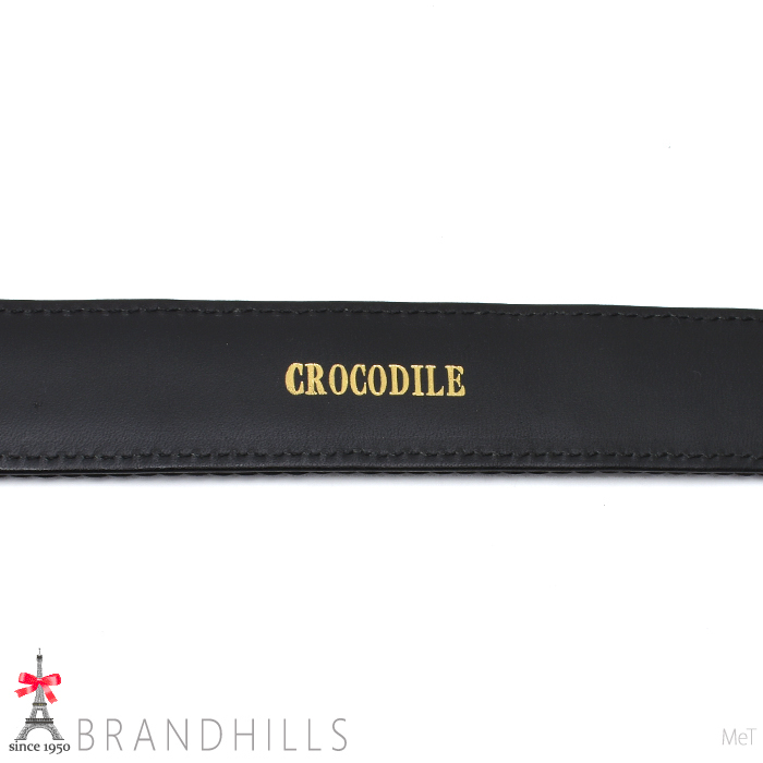 商品名クロコダイル ベルト メンズ ブラック シャイニング加工 紳士用 幅35ミリ ピンバックル式 革編み縁取り 裏:牛革 日本製