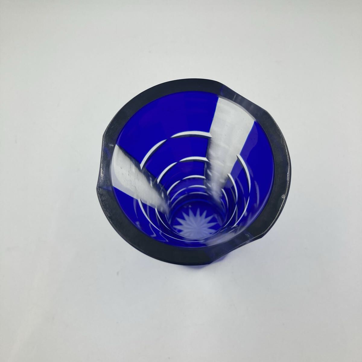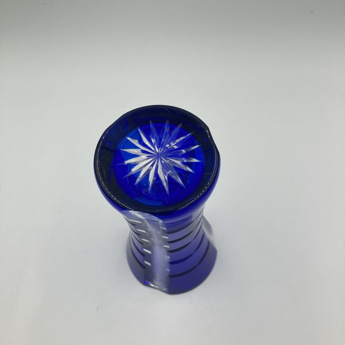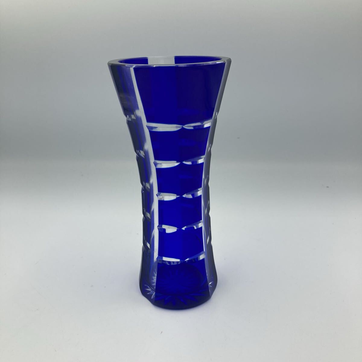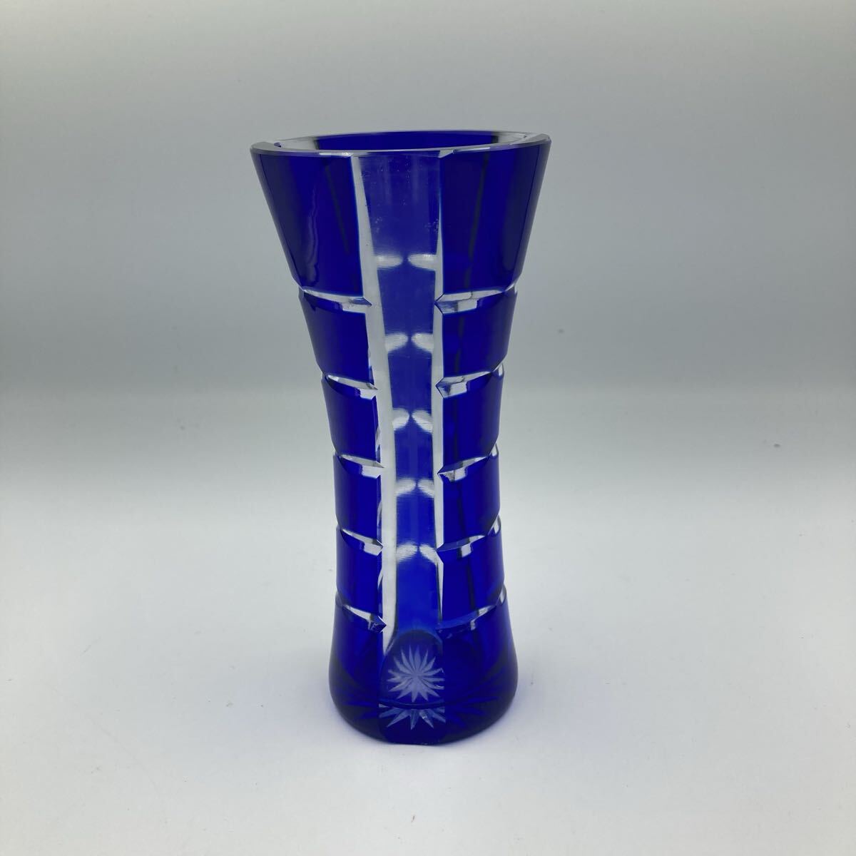 【5466】切り子 花瓶 ガラス 青 高さ約18センチ