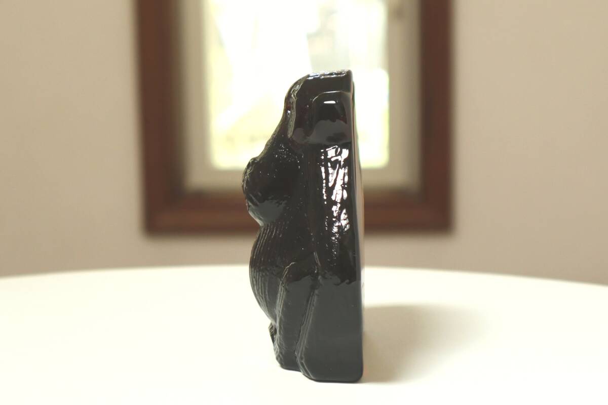 シリーズ・名称:Apa サル デザイナー:Lisa Larson リサ ラーソン メーカー:Royal Krona ロイヤルクローナ 製造年代:1970年代 サイズ:約 W8,6×D3,5×H8,5cm 素人の平置採寸・計量ですので、誤差はご了承下さい。 素材:ガラス カラー:ブラウン お使いのモニターにより多少色目が異なると思いますが、ご了承下さい。 シール:FORM LISA LARSON その他:口元を手で覆った「言わざる」のオブジェで、クリスタルガラス製のクリアカラーが一般的ですが、こちらは あまり見掛けることの無いブラウンカラーガラスの作品です。 背面が平たく適度な重みが有るので、ペーパ ーウェイトとしてもお使い頂けます。 |