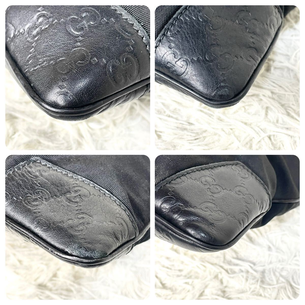 グッチ GUCCI ショルダーバッグ シマ ブラック 黒 レザー ナイロン メンズ レディース 男女兼用 ユニセックス 斜め掛け 161822