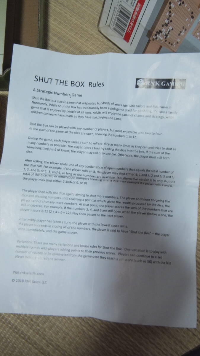 R070807 断捨離 処分「シャット ザ ボックス ボードゲーム 微使用」保管品 USED