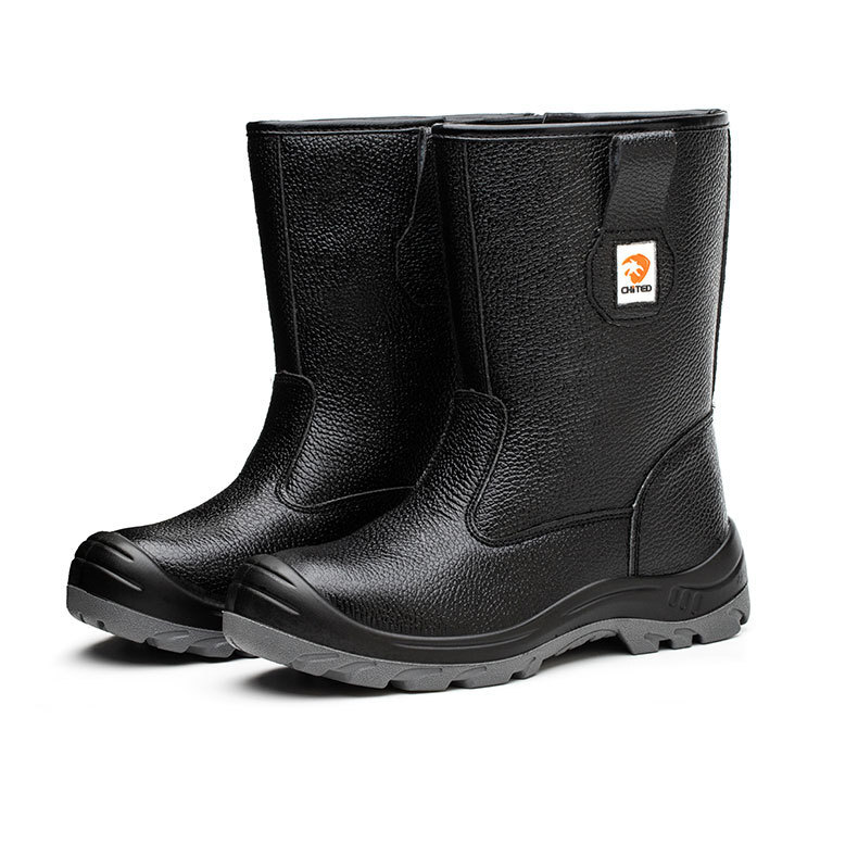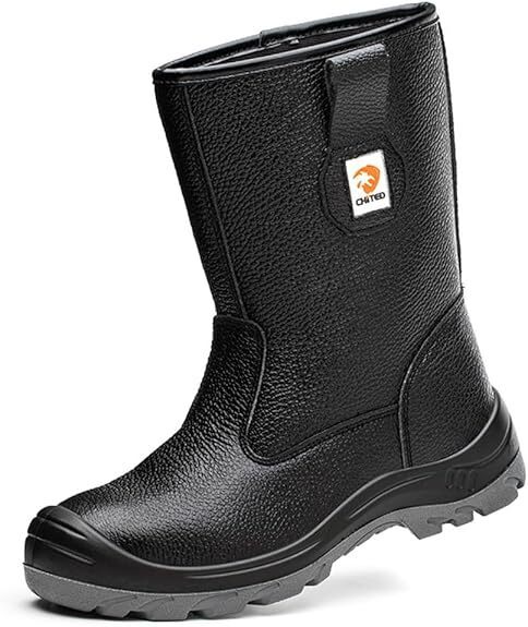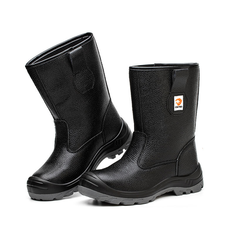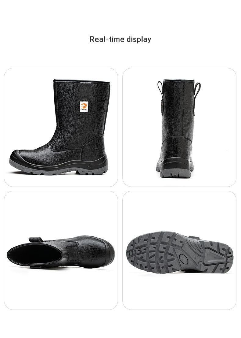 安全靴 長靴 鋼先芯入り 防水 安全長靴 半長靴 軽量 革 耐油 踏み抜き防止 黒 サイズ:28cm