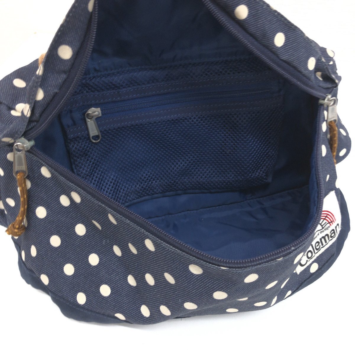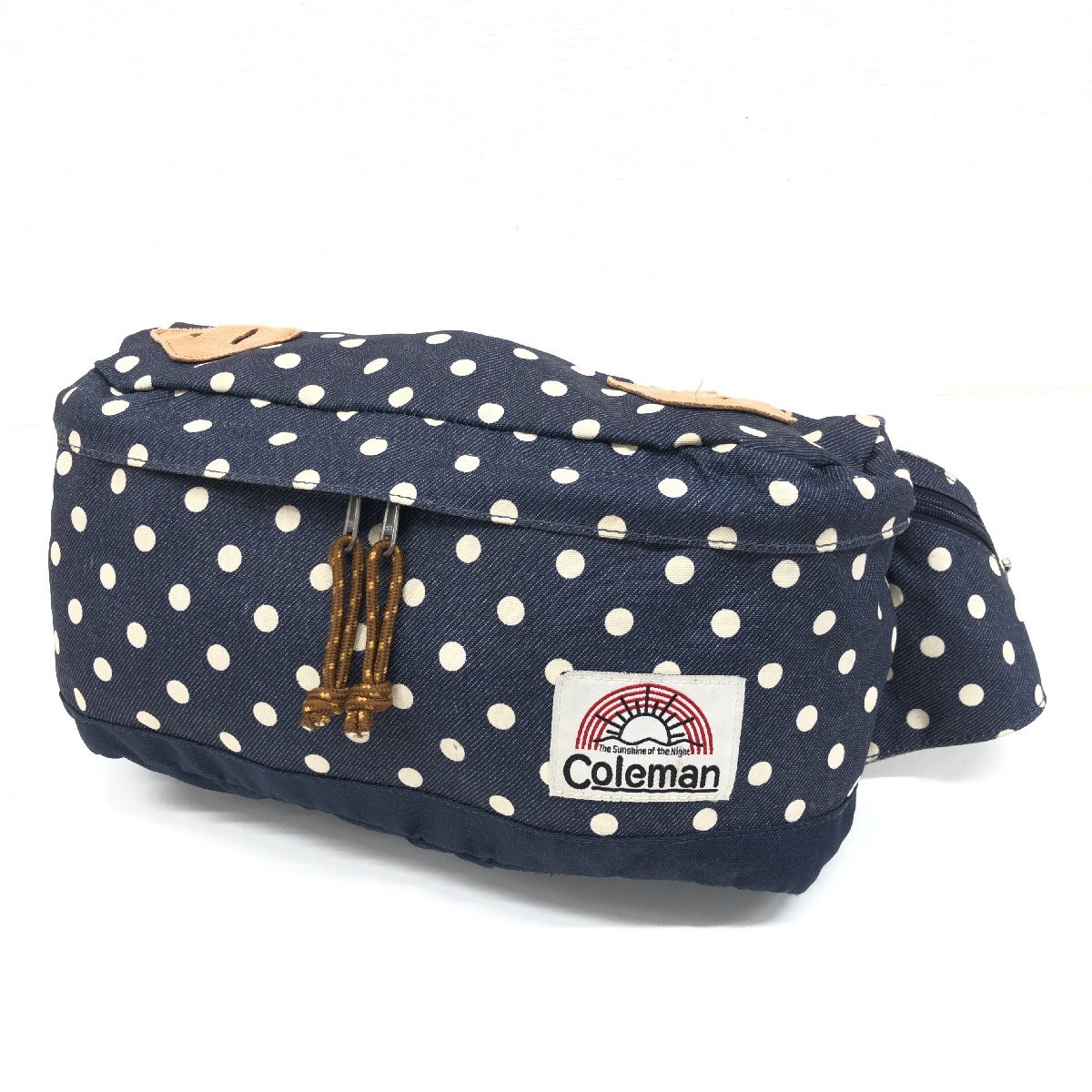 Coleman コールマン 水玉 ドット柄 デニム風 ウエストバッグ 紺 ネイビー ショルダーバッグ ボディバッグ アウトドア キャンプ レディース
