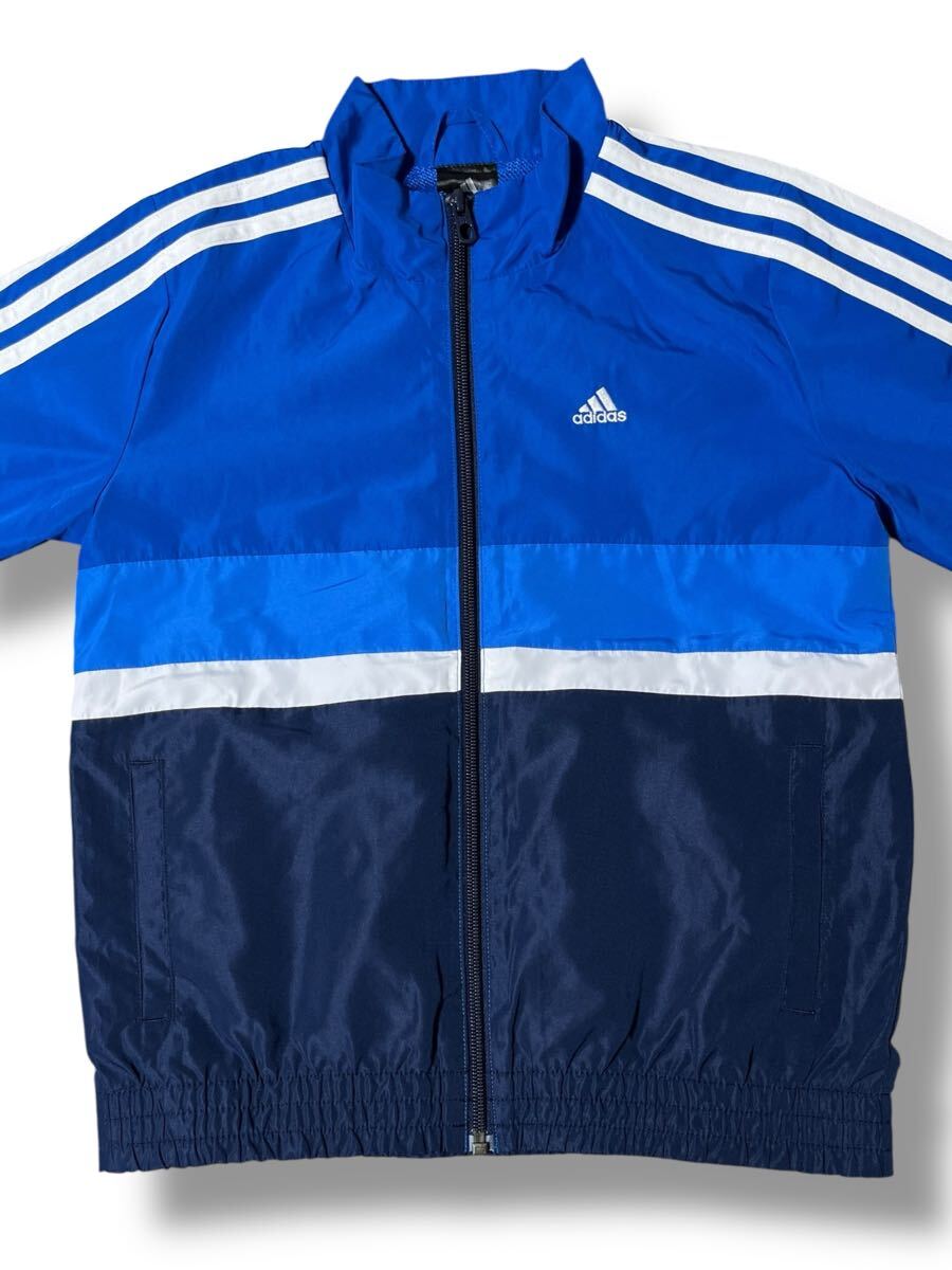 adidas 長袖ジップアップジャケット ブルー系 キッズ130 ●洗濯プレス済●ネコポス可● アディダス 青 アウター スポーツ 古着/572