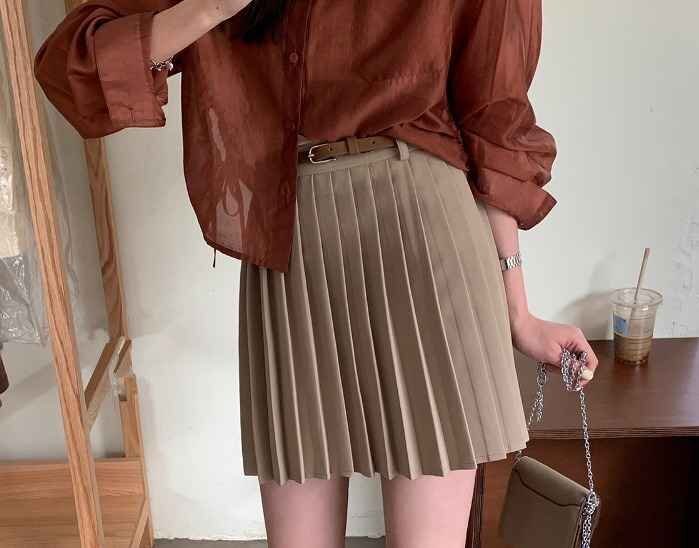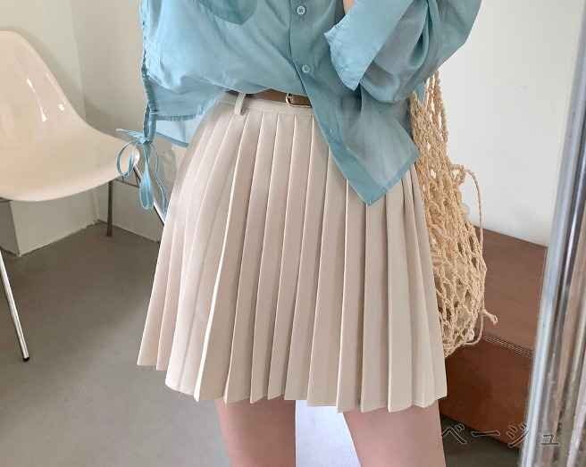 全4色 ミニスカート ハイウエスト フリル プリーツスカート かわいい L ベージュ