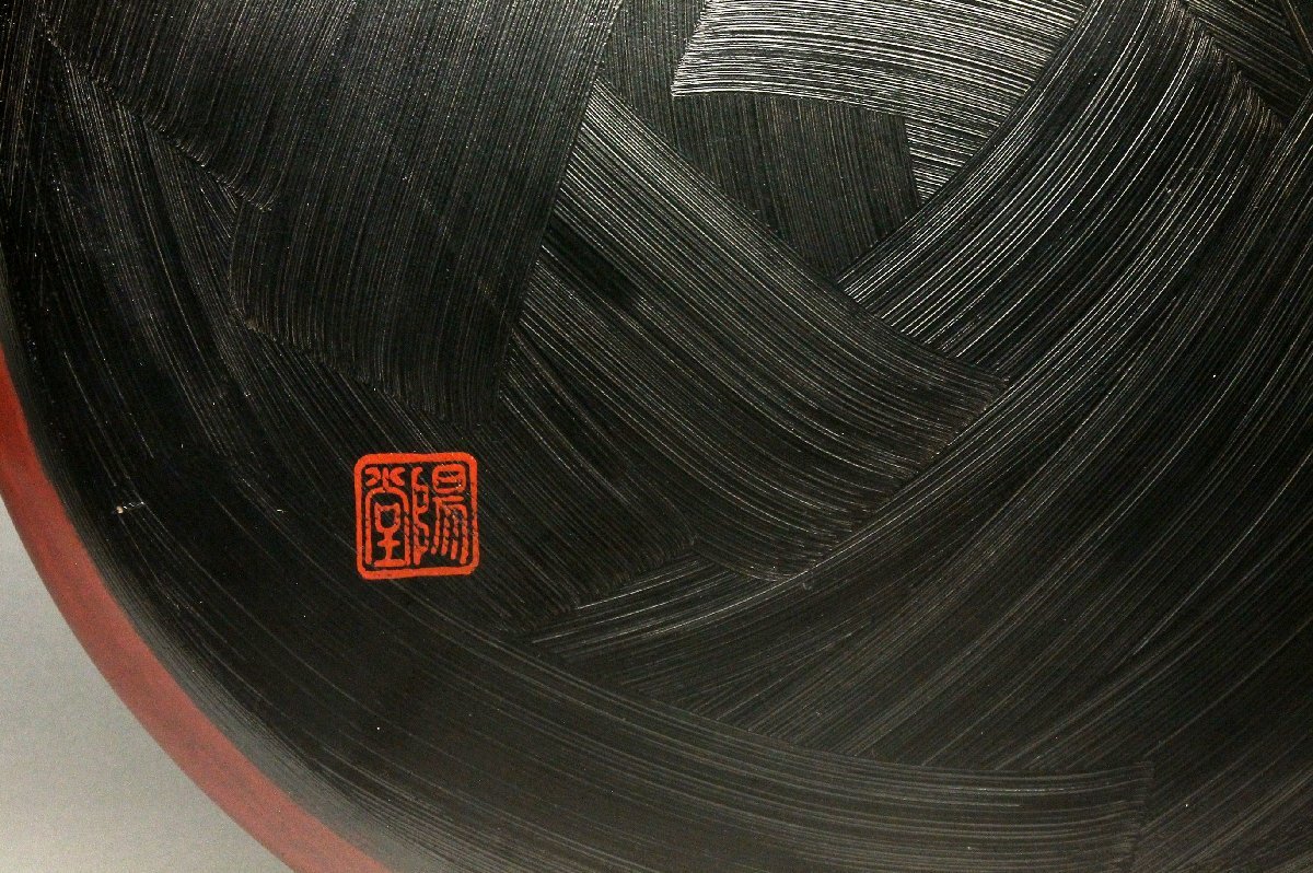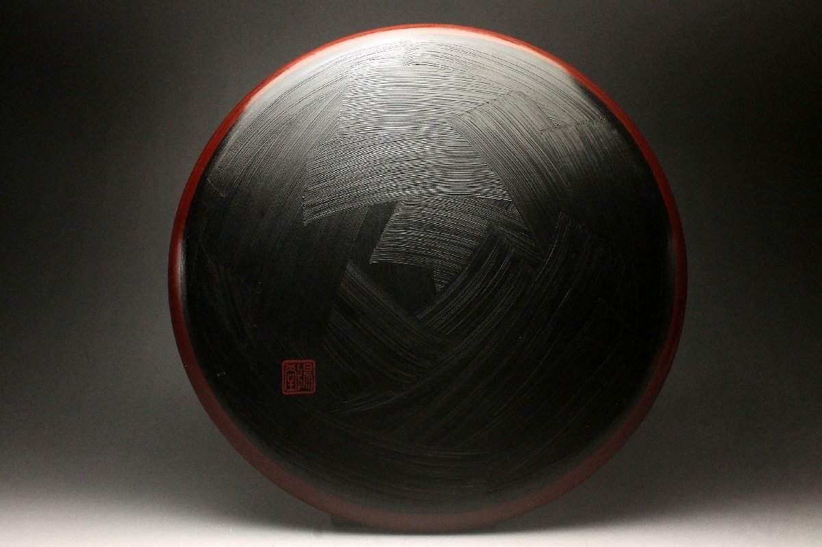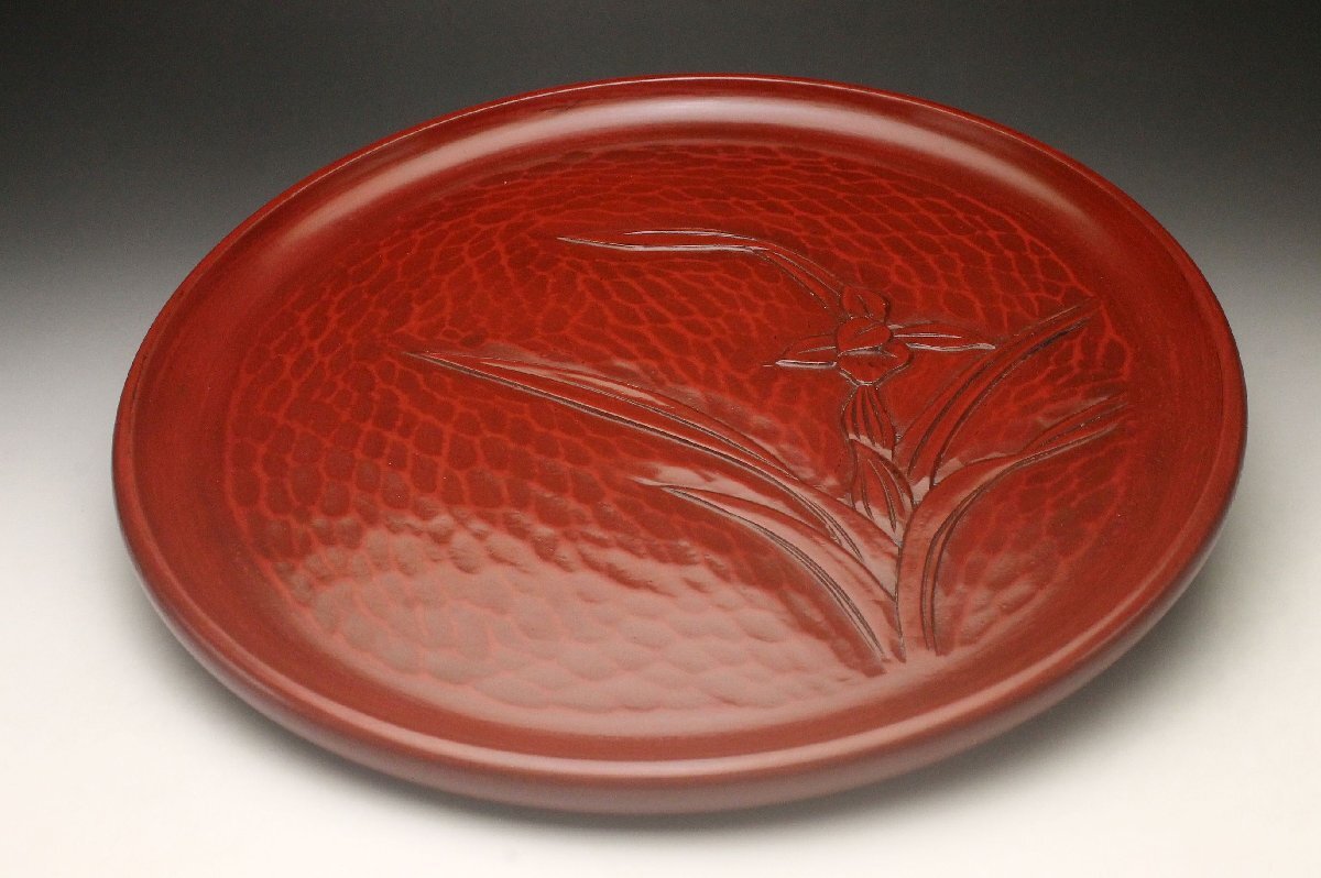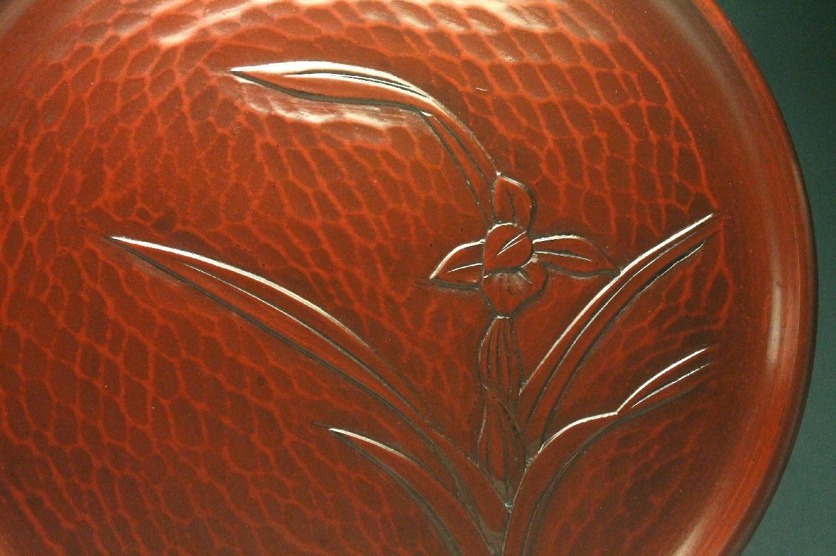【余韻】 茶道具 鎌倉彫 陽堂 蘭文 丸盆★径:27cm 無傷美品<同梱可>