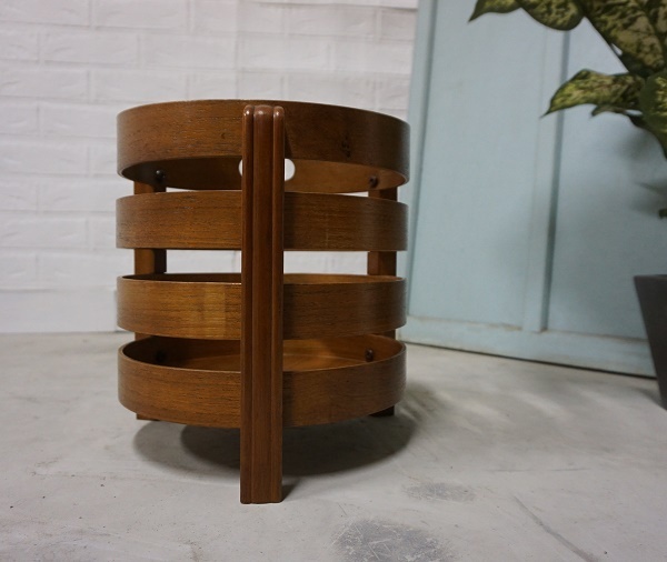 希少 ヴィンテージ チーク材 サイトーウッド プランタースタンド 収納ラック マガジンラック 雑誌入れ 本棚 スタンド ディスプレイ 収納ケース