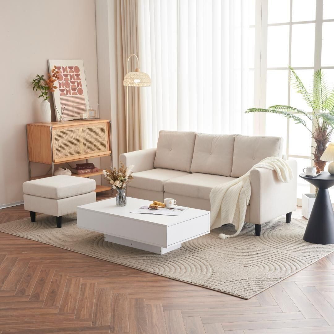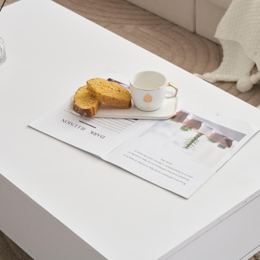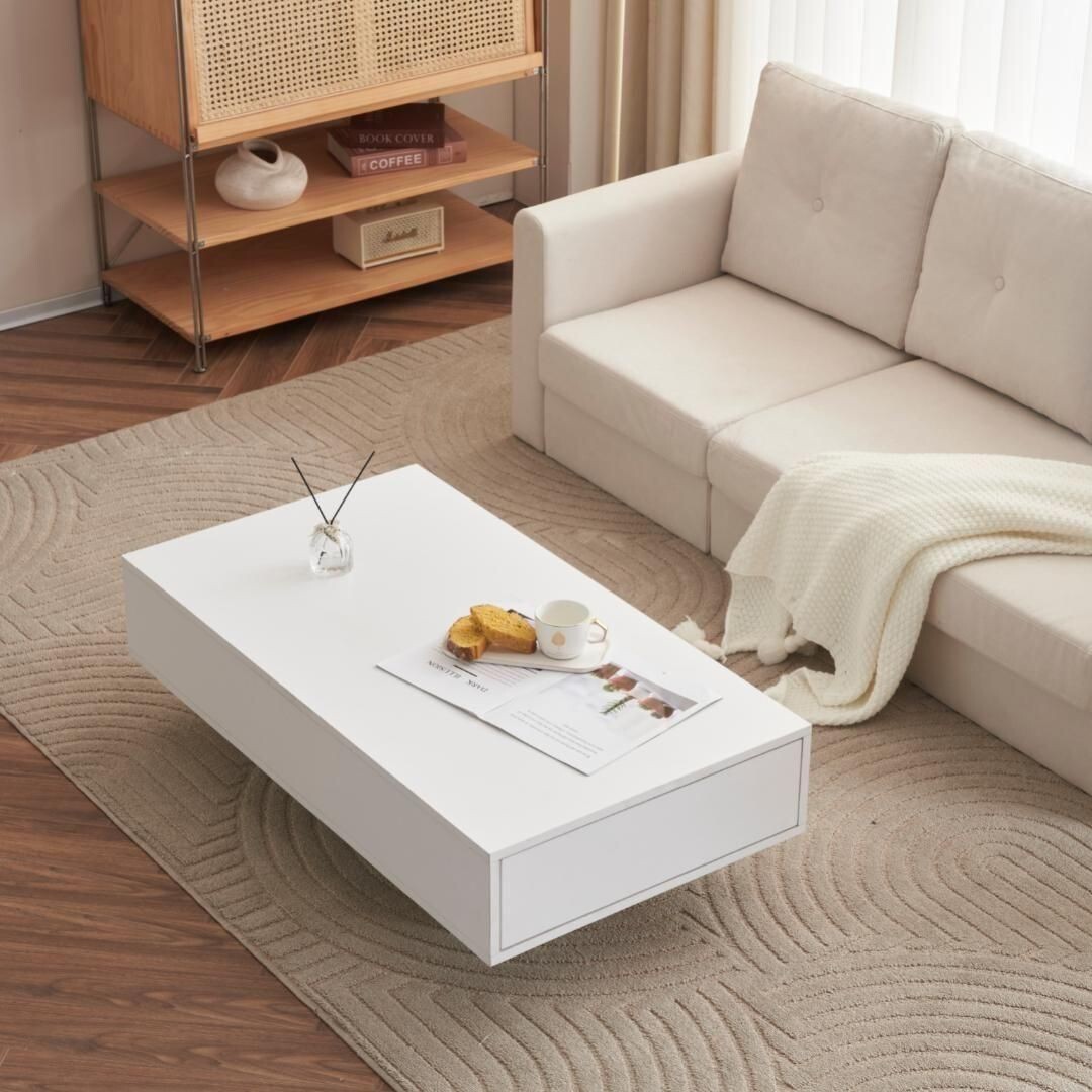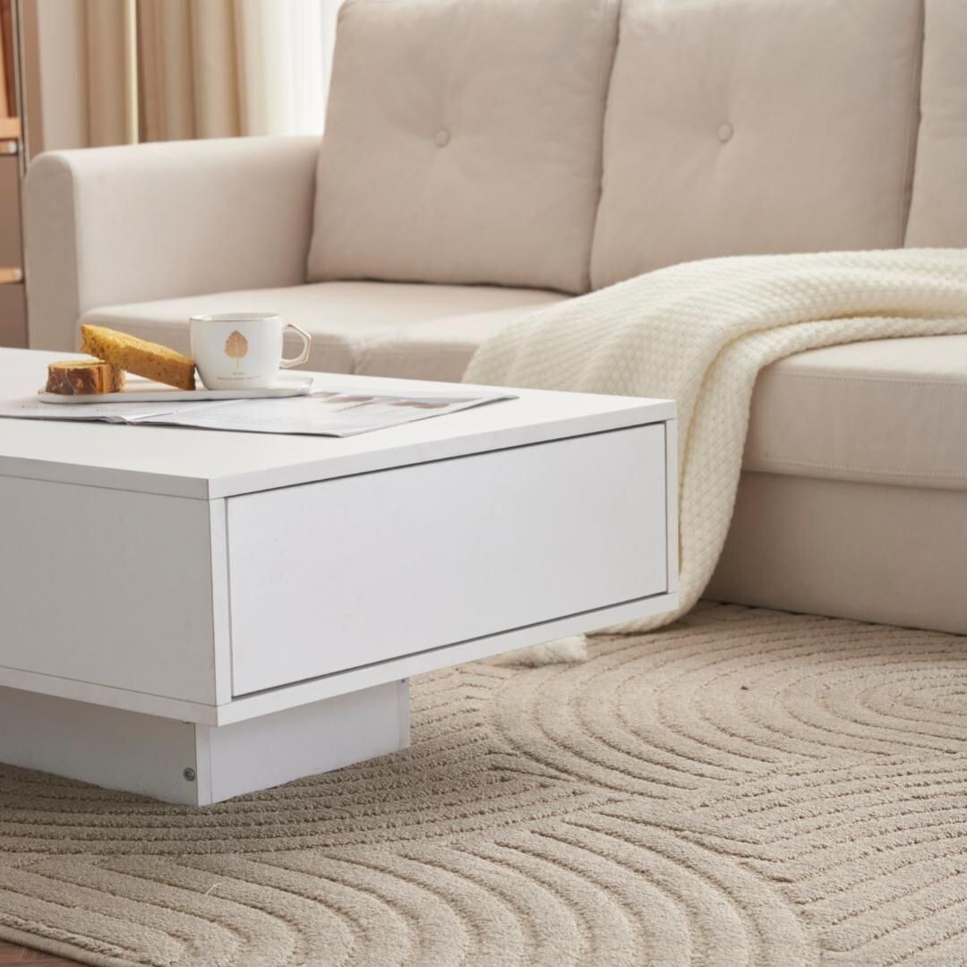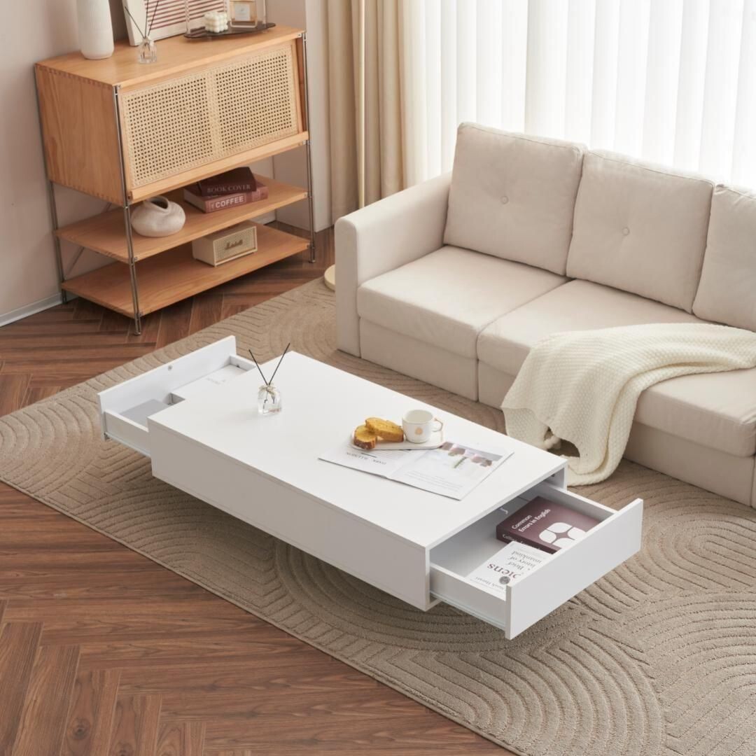【衝撃を減らす隠しデザイン】このローテーブルは、隠しスイッチ装置は一般的なスプリングより美しいと実用性を揃えており、静かで使用が可能です。スライドレール式で重量が増えてもストレスフリーに。隠しスイッチが装備されており、軽く押すだけで引き出しが出します。また、