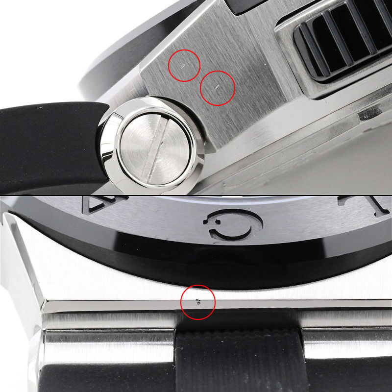 | 状態 | ランクA+ オーバーホールと新品仕上げ済みでございます。 フラッシュフィットとケースサイドとバックルと裏蓋に光の反射で見える極微細なキズがあり、ラバーベルトに極微細なスレがございます。 |