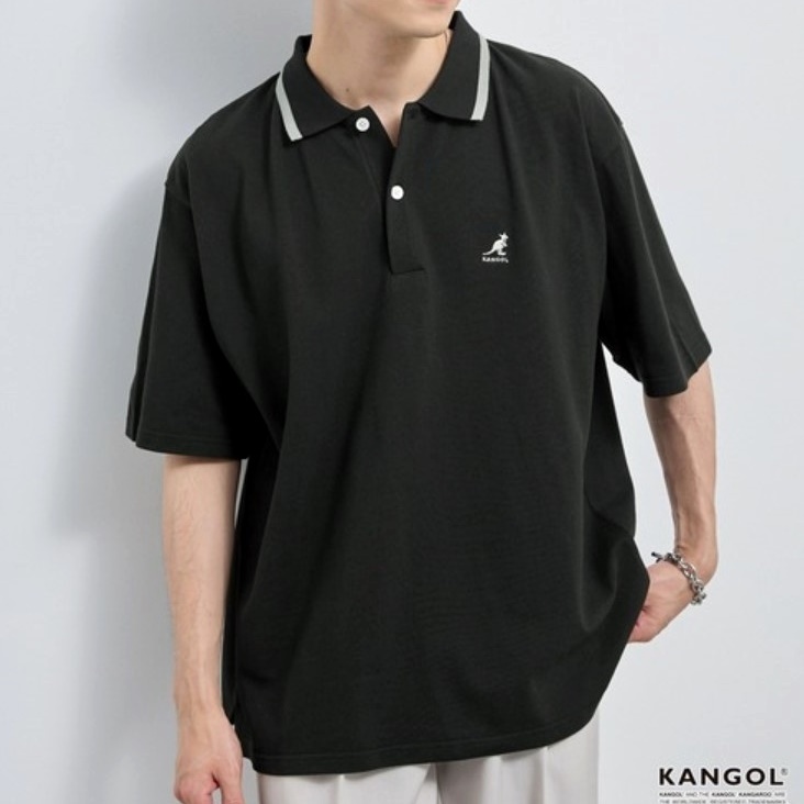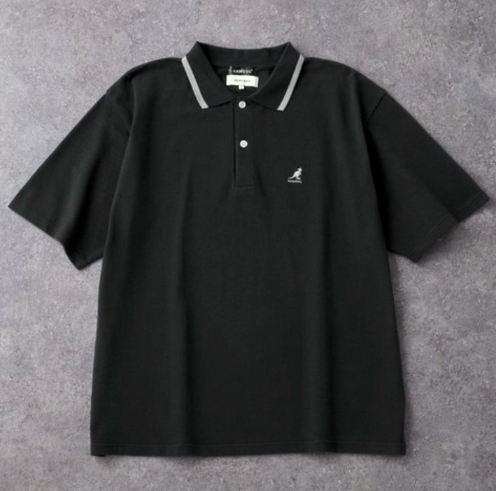 ●送料390円可能商品 カンゴール KANGOL 新品 メンズ オーバーサイズ 鹿の子 半袖 ポロシャツ 黒 Lサイズ[SC116381N-L] 一 三 弐★QWER★
