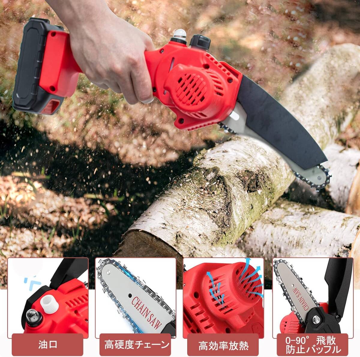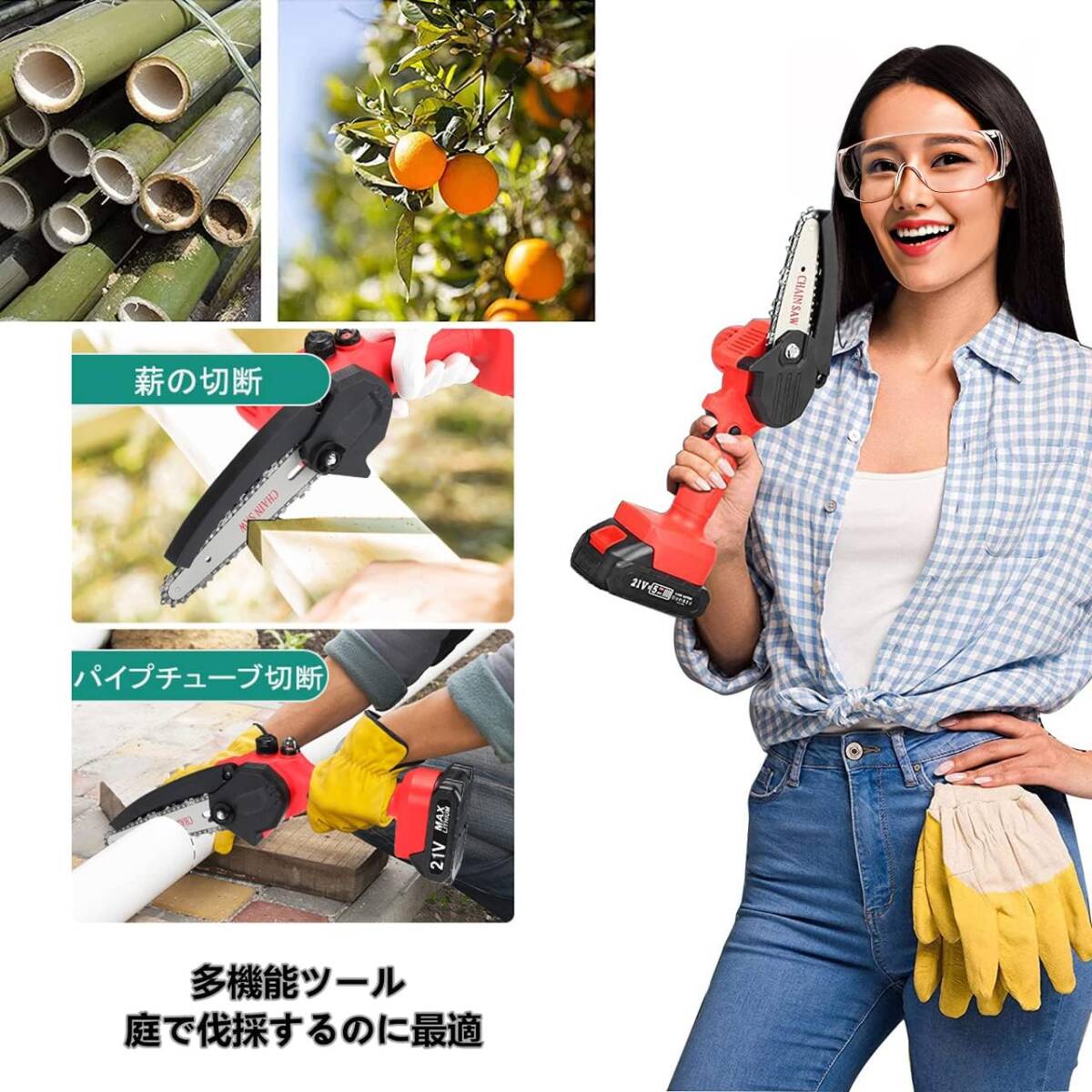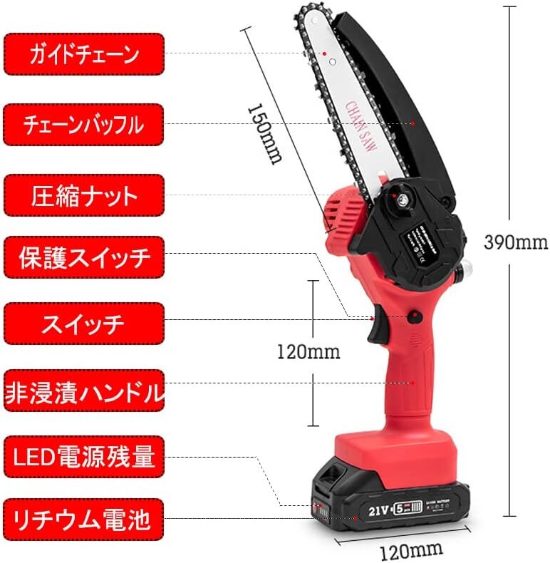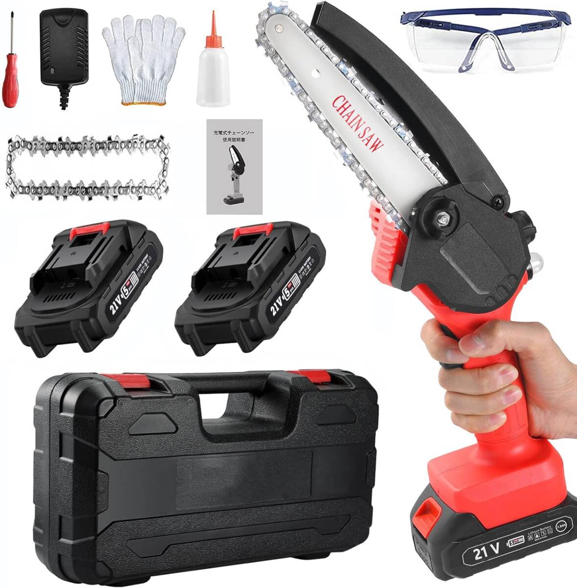 おすすめ 充電式チェーンソー 21V 3.0Ah大容量バッテリー2個搭載 自動給