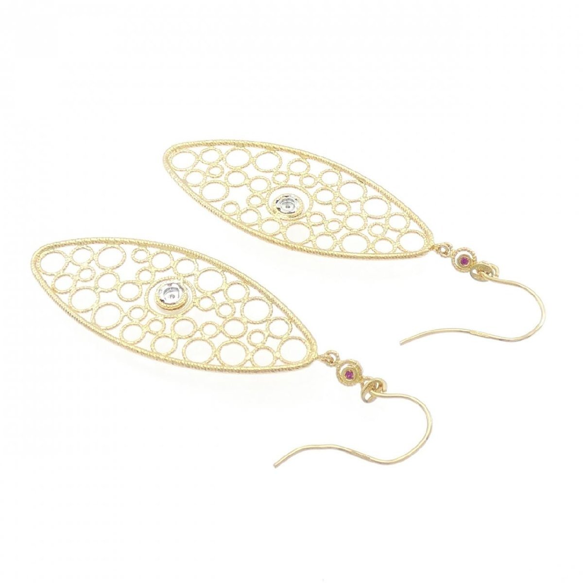 輝きの良いダイヤモンドをセッティング。裏側にはルビーがあしらわれた存在感あふれるジュエリーです。