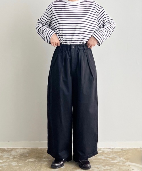 キーワード:チノパン レディース ウエストゴム ストレート ハイウエスト フルレングス ワイドパンツ 無地