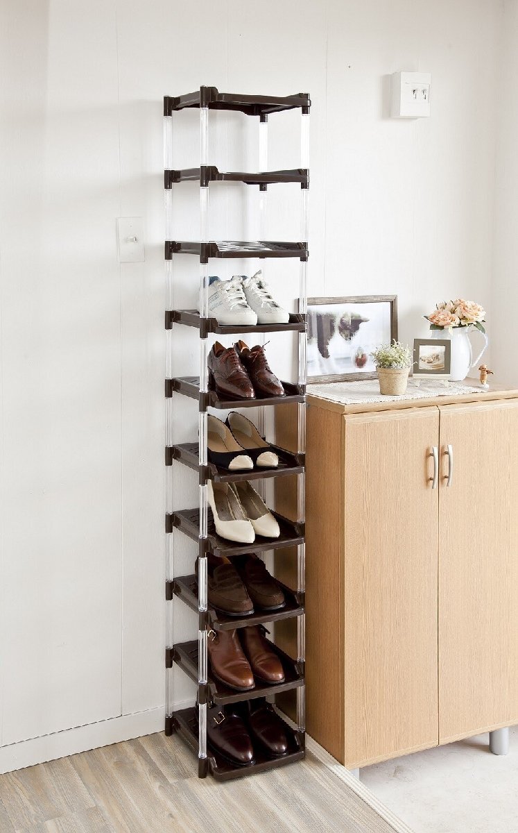 | 即決可@新品[日本製下駄箱]通気性抜群シューズラックシングル10段/ブラウン | ||||||||||||